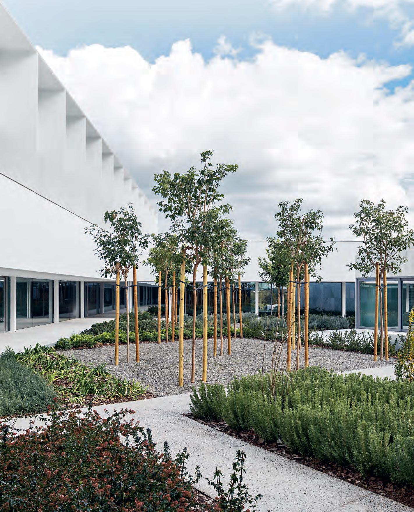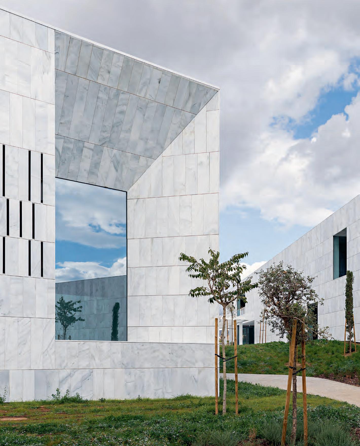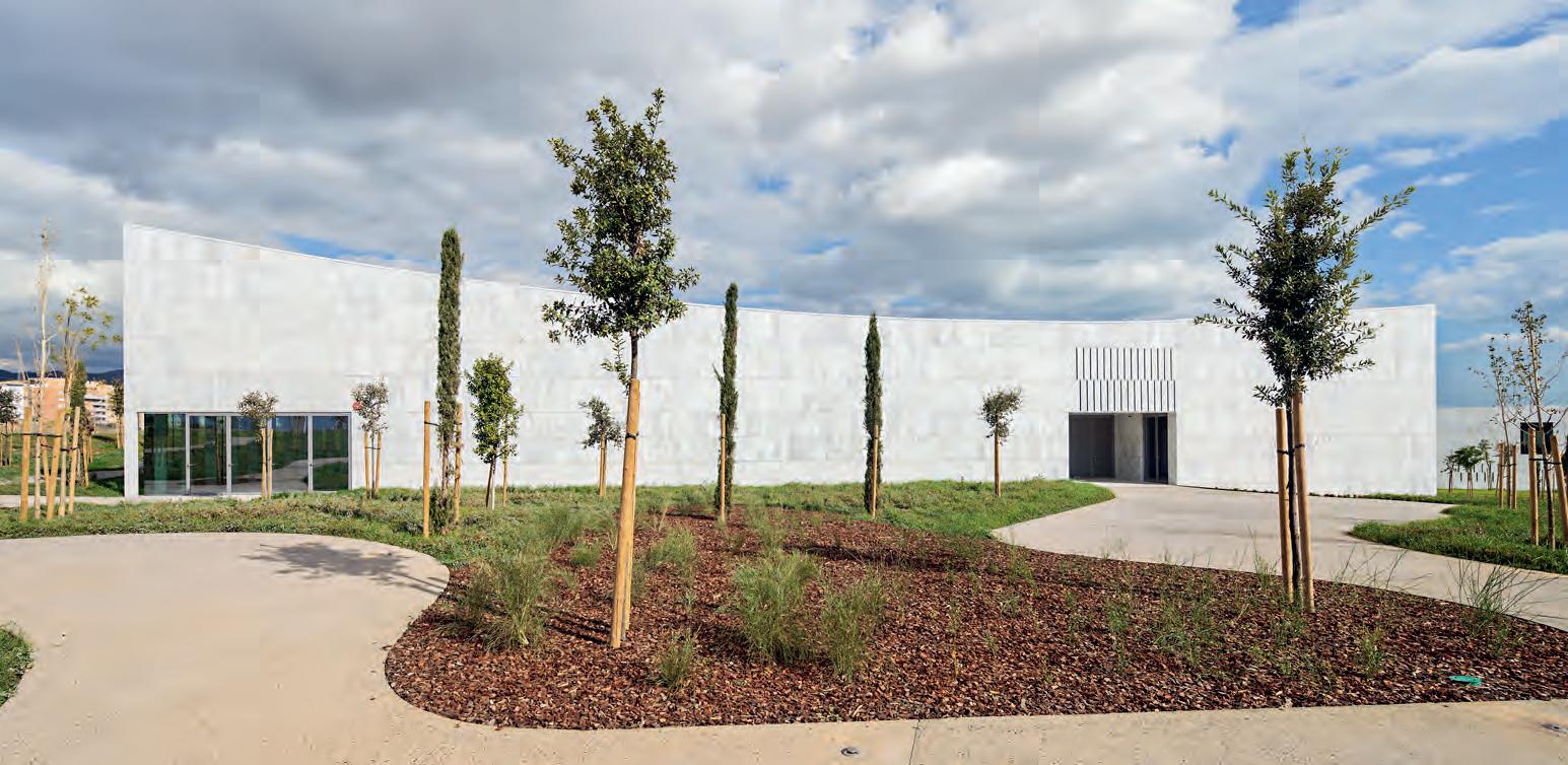 El proyecto, firmado por la oficina de Guillermo Vázquez Consuegra, dialoga con el antiguo Hospital de los Inocentes con un único volumen lineal de hormigón visto, que se adapta a los límites de la parcela.