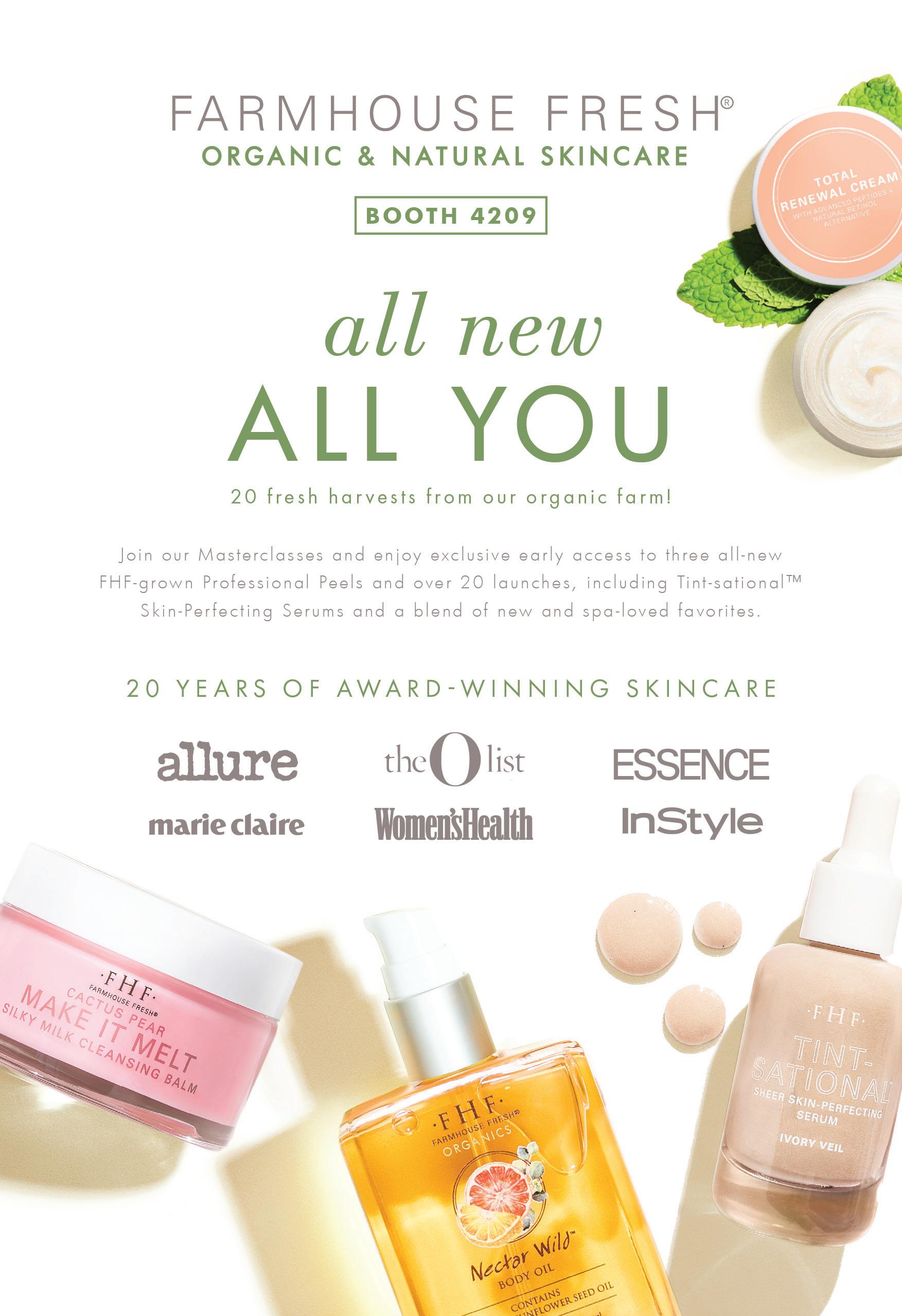 Demo & Masterclass; Boost the results of your favorite facial tools - Gua Sha stones, LED therapy, Dermaplaning, and Microneedling - using the latest potent natural formulas & advances from FarmHouse Fresh’s award-winning globally loved formulas. Comprehensive knowledge on how to choose integrated formulas by vitamin type, peptides, fresh extracts, acids, cannabinoids, and lipids to deliver rapid transformations to guests.