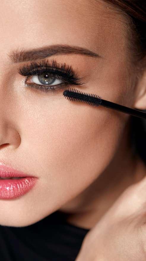 2. Top Coat: Follow up with the dramatic volumizing black top coat with thickening silicone brush.