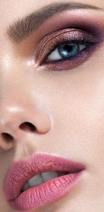Define lips with unique arrow shaped tip and fill in with suede-soft lip colour.