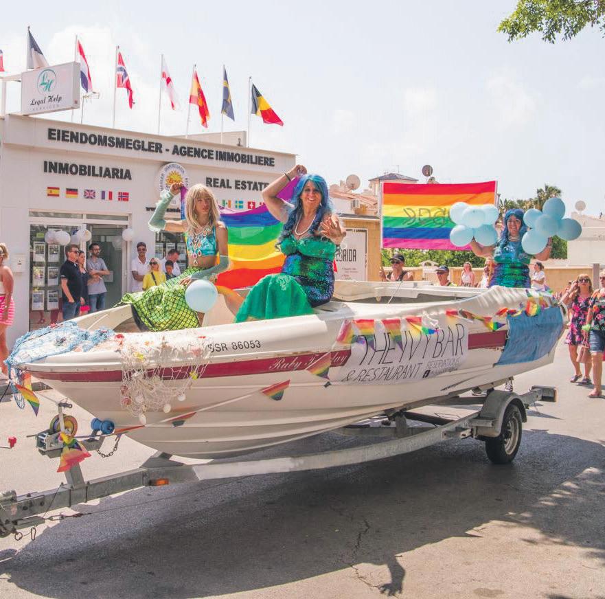 The rst ever Orihuela Costa Pride Festival, with a full parade, concert and disco took place in La Florida recently. Those taking part gathered in the urbanisation’s carpark at 10am to decorate their oats, cars and of course themselves. Slightly later than the planned 11am start, the parade left the car park near the