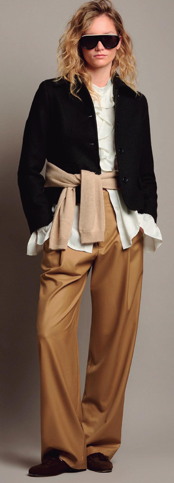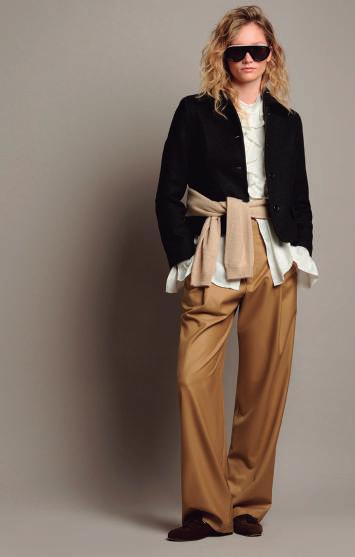 Blazers de estructura impecable, faldas que fluyen con el movimiento, pantalones de calce perfecto y blusas con guiños románticos se complementan con piezas de cashmere, formando los cimientos de un estilo personal sólido.