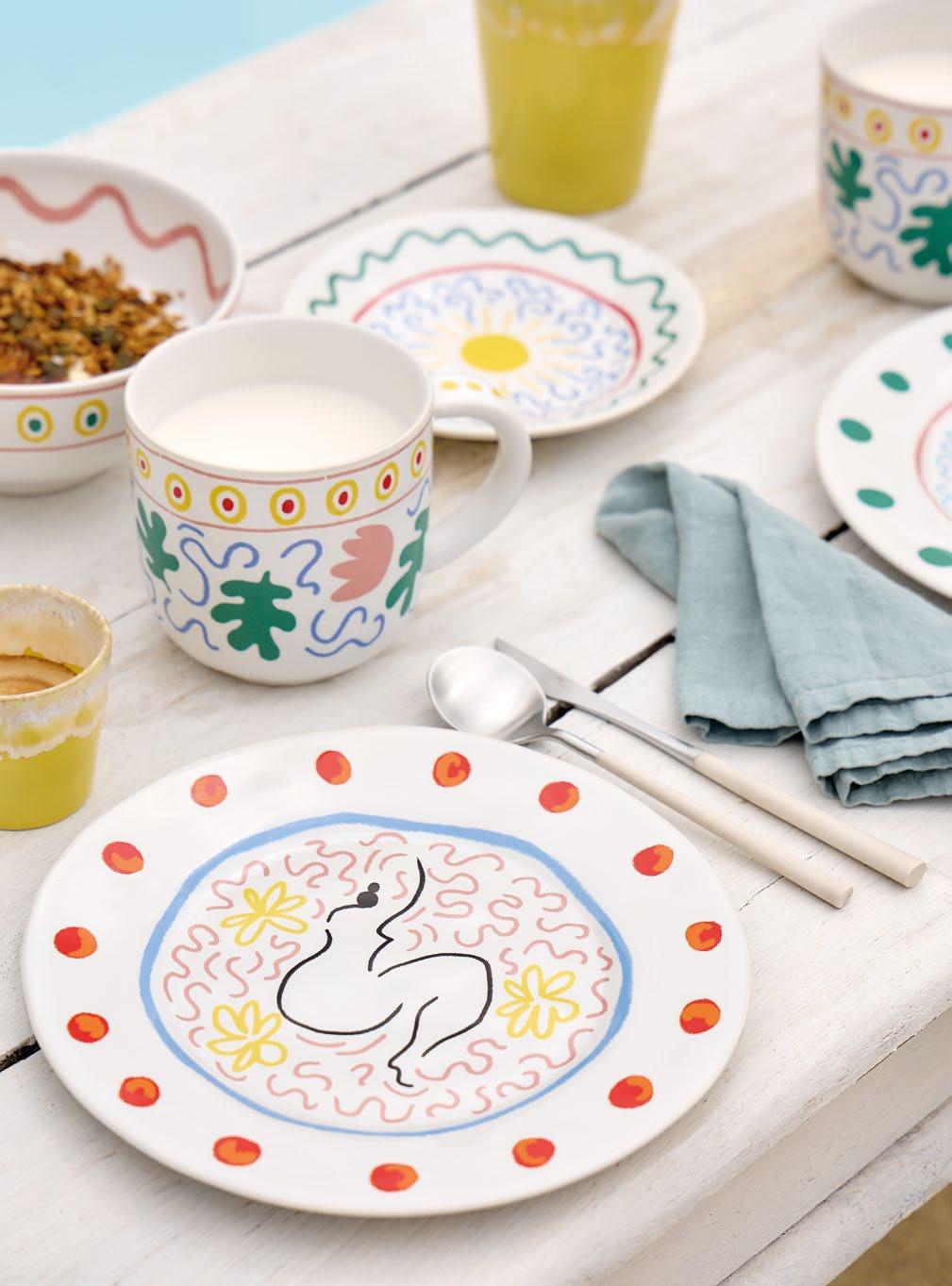 A French designer raised in a family of porcelain makers, now based near Lisbon. After studying at Central Saint Martins, she ventured into ceramics, textiles, and painting. Her playful and colorful creations blend French charm, London’s quirky edge, and Portuguese warmth, infusing joy and humor into everyday life. Her inspiration led to the creation of the Summer Bliss collection.