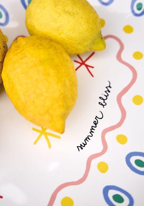 A French designer raised in a family of porcelain makers, now based near Lisbon. After studying at Central Saint Martins, she ventured into ceramics, textiles, and painting. Her playful and colorful creations blend French charm, London’s quirky edge, and Portuguese warmth, infusing joy and humor into everyday life. Her inspiration led to the creation of the Summer Bliss collection.