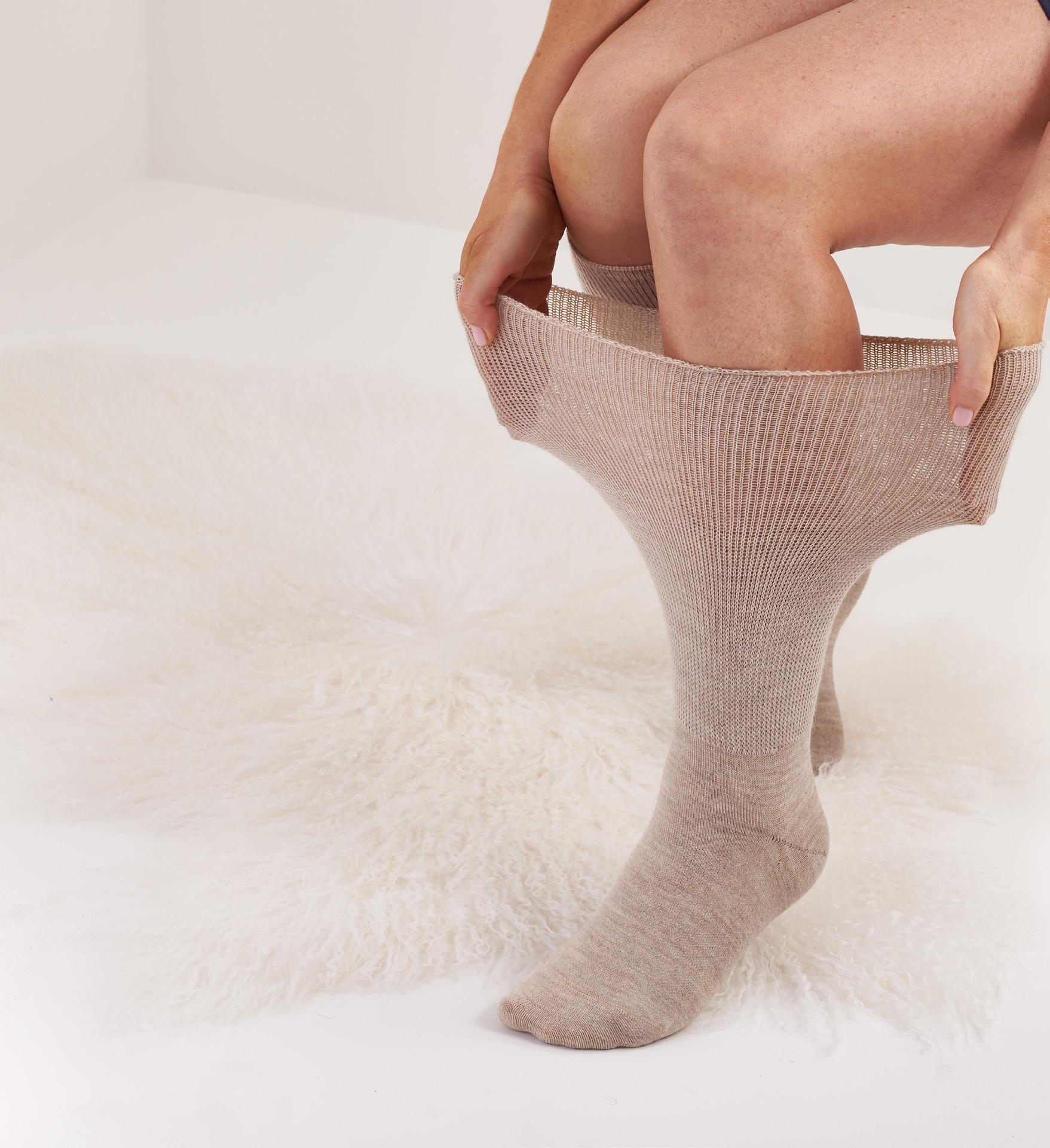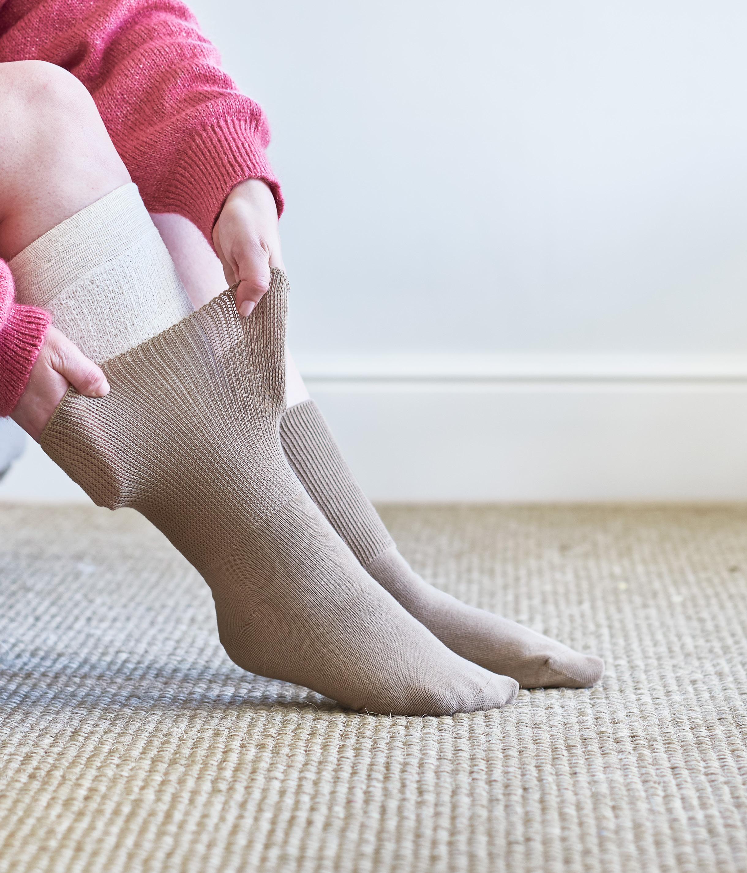 These extra, extra roomy socks fit large or swollen legs, ideal if you suffer from oedema (fluid retention) or lymphoedema