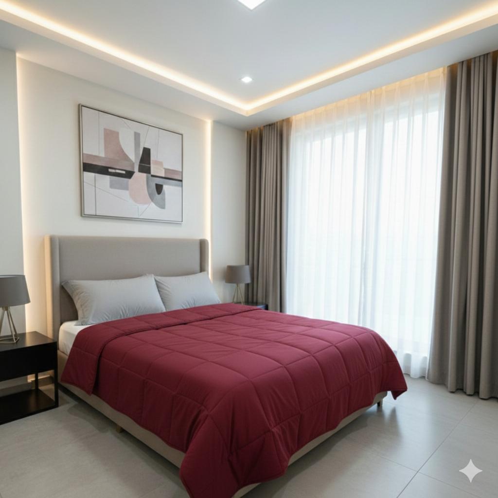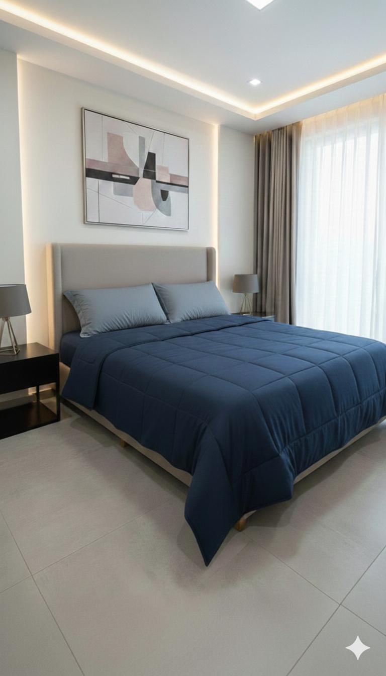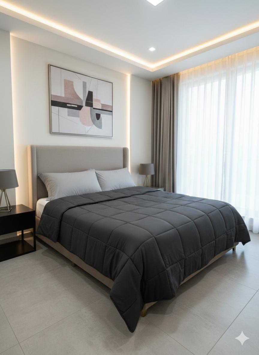 Una trapunta tinta unita pensata per vestire il letto con una presenza più piena, più calma e più sensoriale.