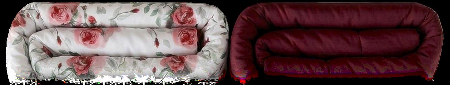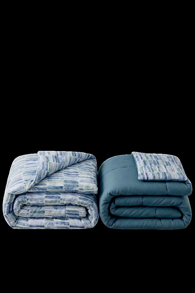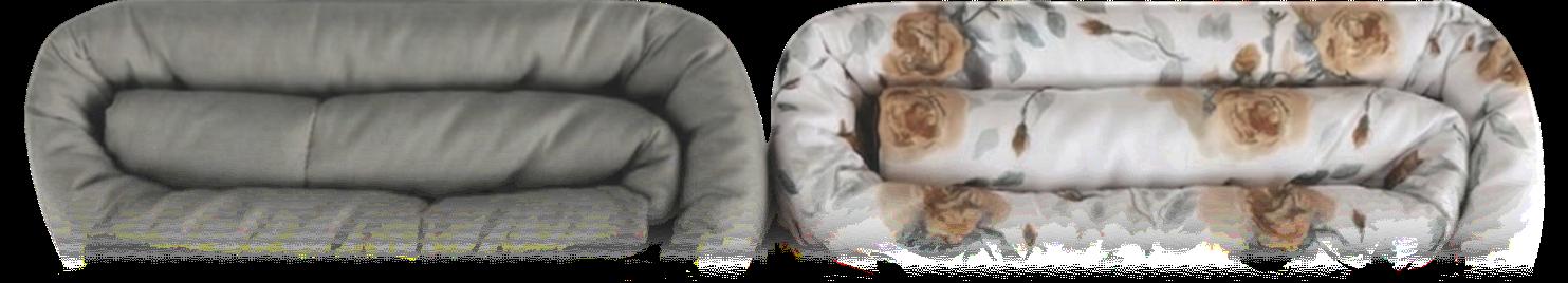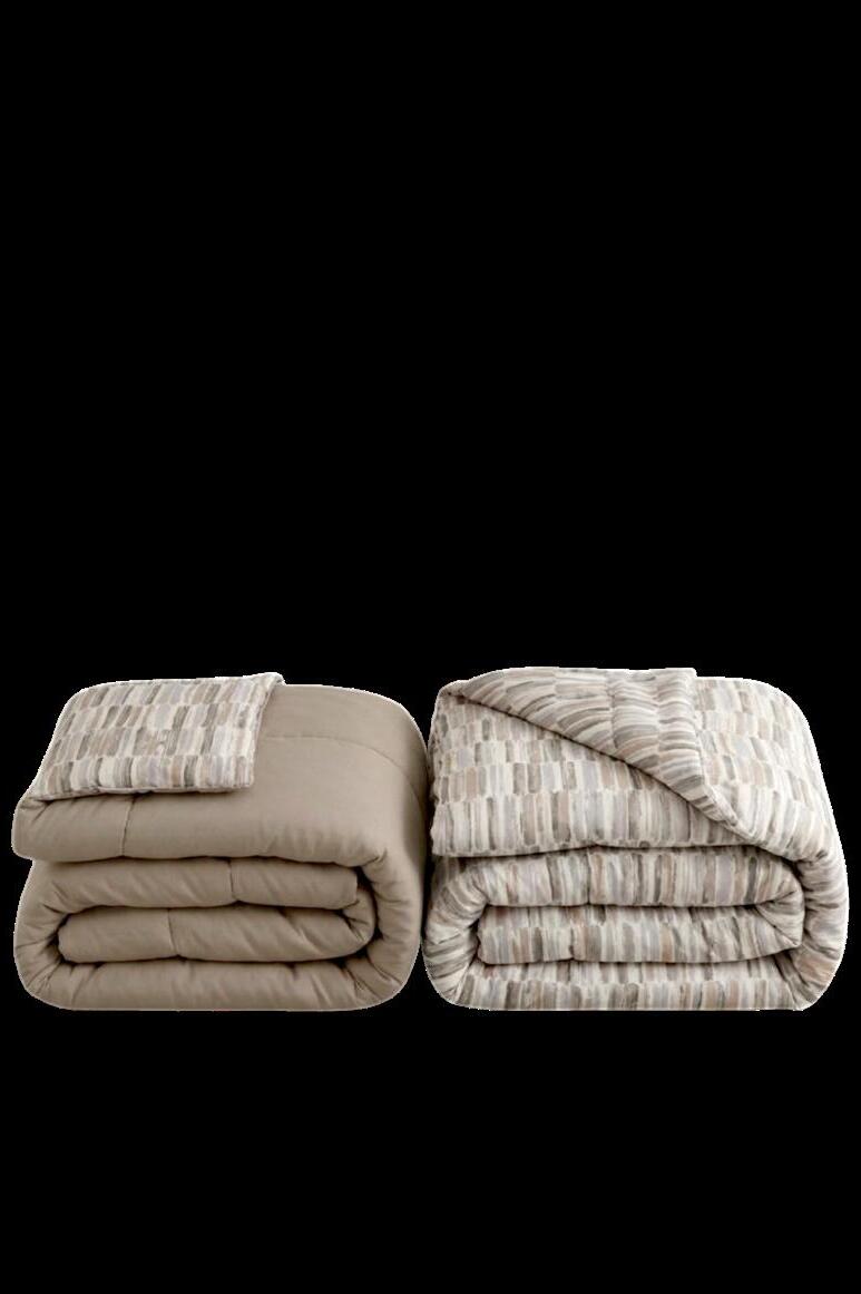 Da un lato, le trapunte reversibili, pensate per offrire due letture dello stesso stile: il carattere della parte stampata e l’equilibrio della tinta coordinata.