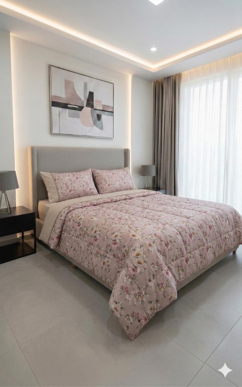 Un botanico arioso e raffinato, pensato per portare nel letto calma, luce e armonia contemporanea.