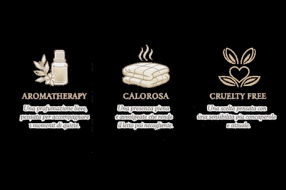 A questa eleganza visiva si accompagna una profumazione lieve, pulita e delicatamente distensiva, studiata per lasciare nell’atmosfera una sensazione soffusa di calma.