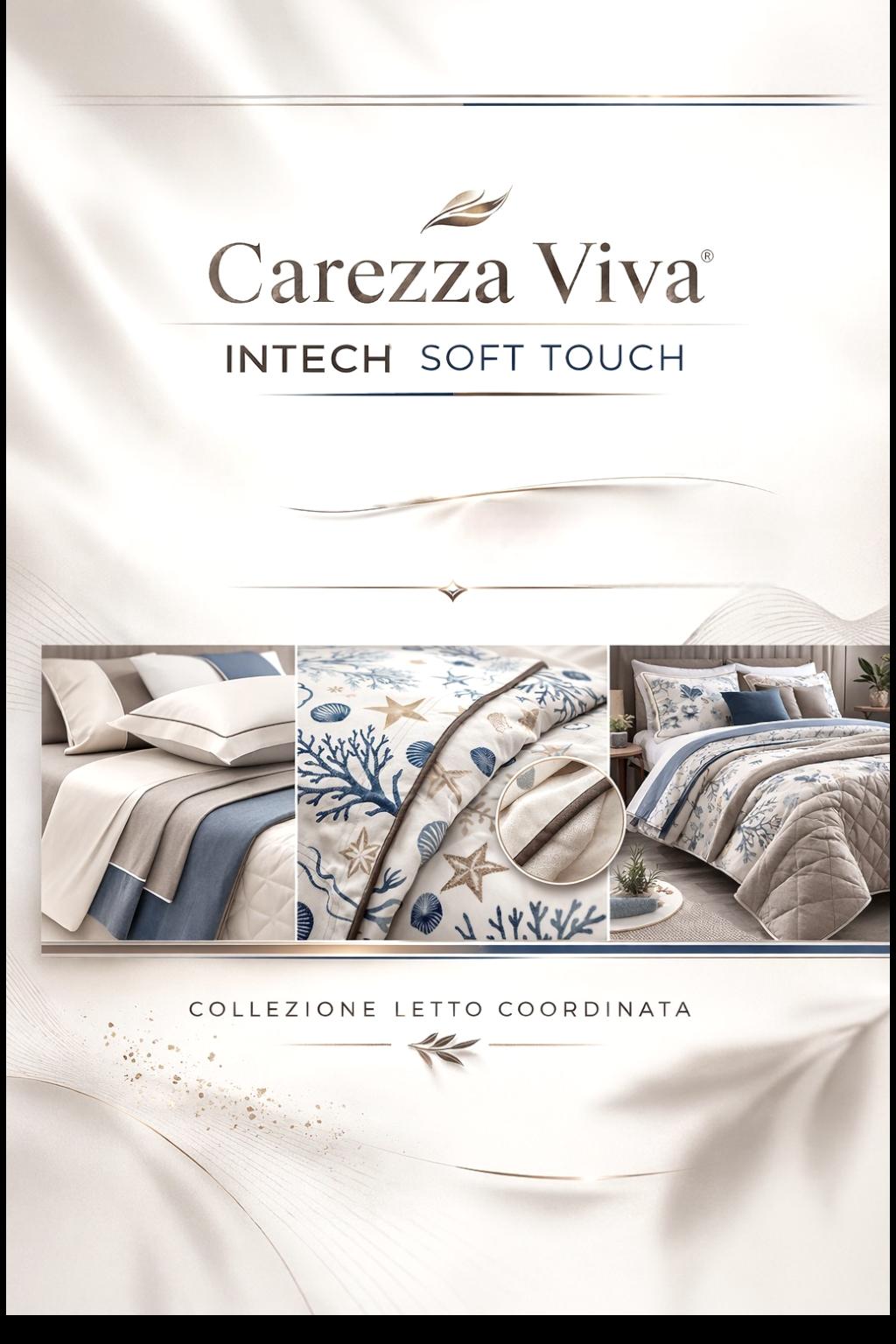 Carezza Viva INTECH™ Soft Touch prende forma in una collezione completa, costruita per offrire armonia visiva, praticità quotidiana e coerenza di stile tra bicolor, stampati e trapunte. Ogni linea è studiata per dialogare con le altre, permettendo di comporre il letto in modo personale, ordinato e riconoscibile, mantenendo intatta la stessa firma estetica della collezione.
