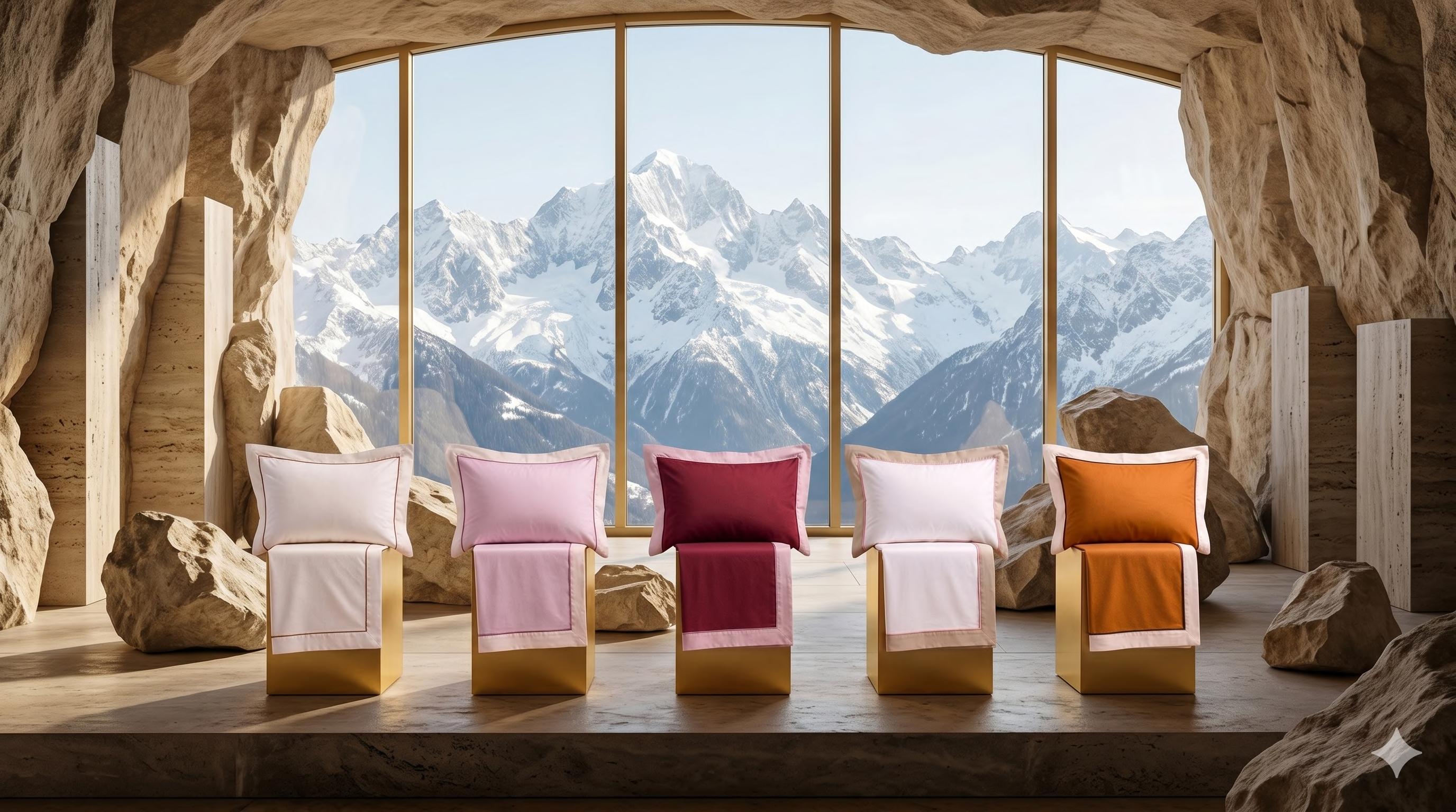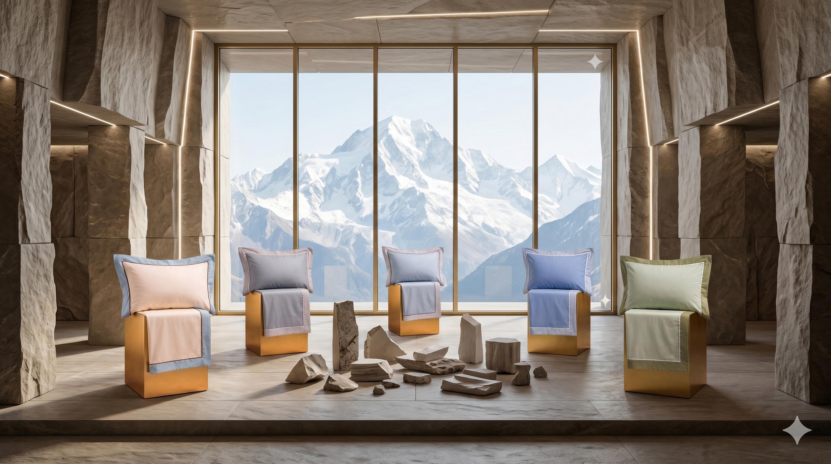 Dalle tonalità minerali che evocano la terra, ai grigi dell'anima, fino ai neutri che profumano di carta antica. Ogni accostamento tra tessuto e profilo è stato studiato per non stancare mai l'occhio, creando un equilibrio visivo che invita alla contemplazione e al riposo sovrano.