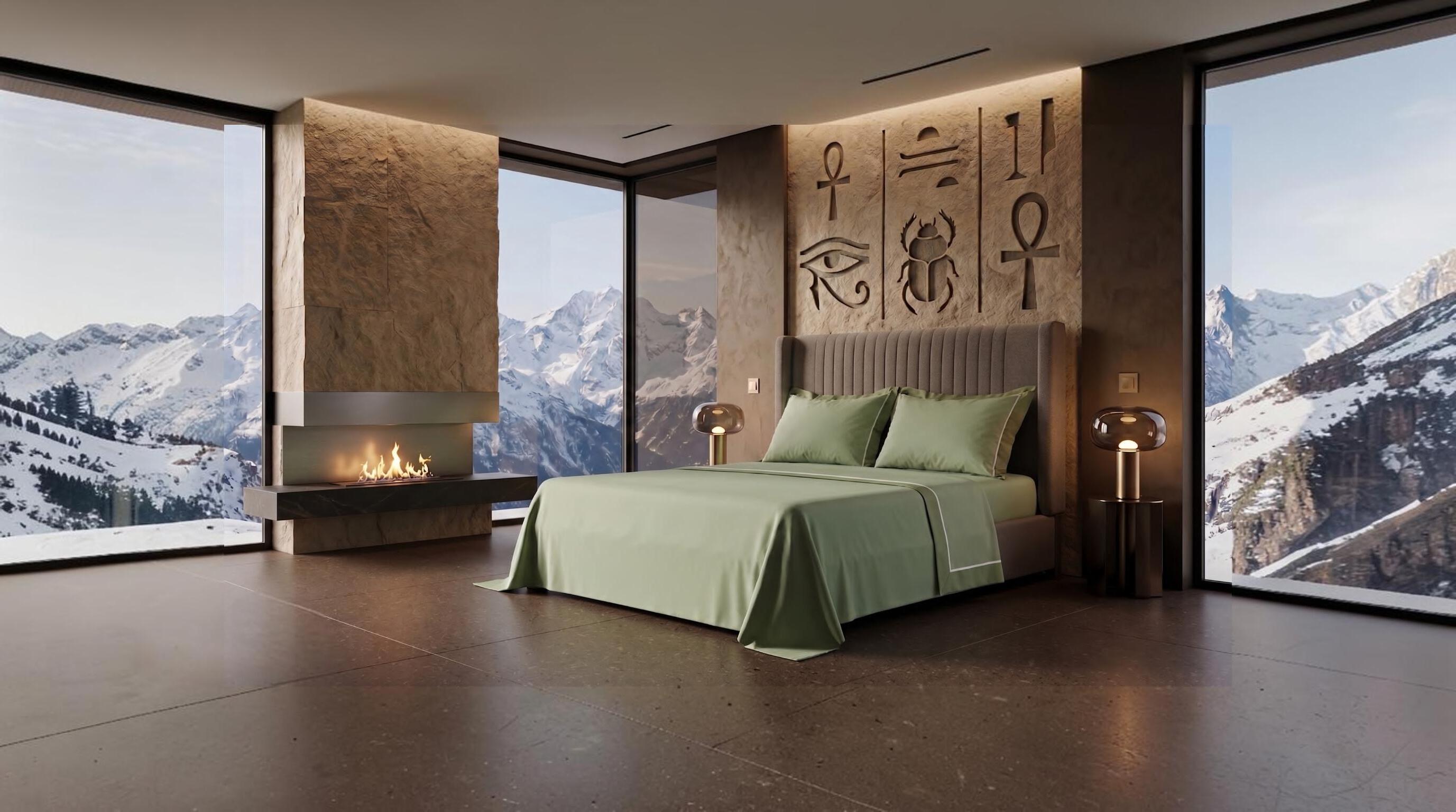 L'anima nobile della finitura cashmere si fonde alla purezza del Cotone Egiziano, creando una trama che sembra tessuta dalla . luce stessa.