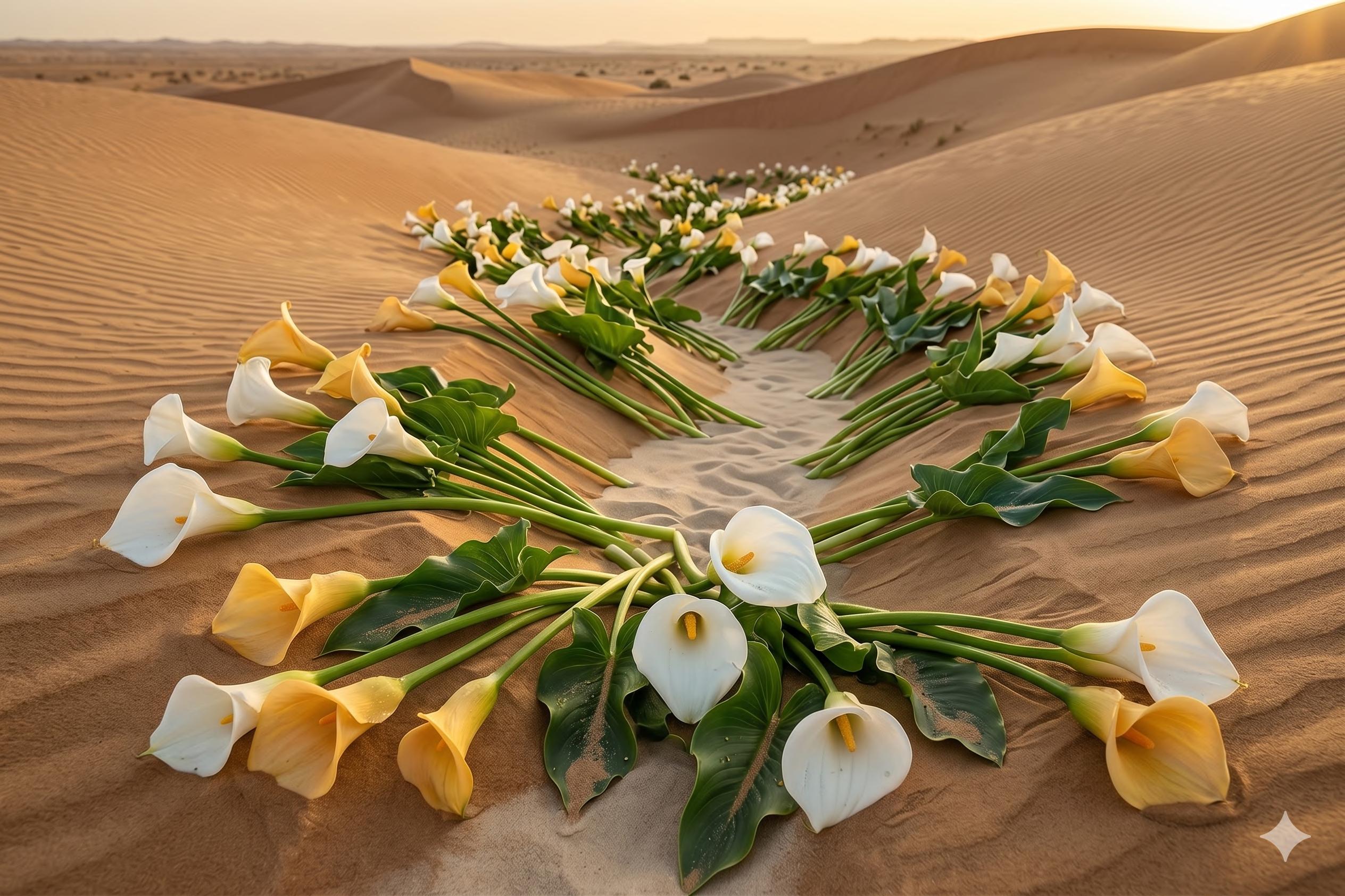 Kalos celebrates the Calla Lily, the flower of Greek beauty, renowned for its continuous line and perfect chalice. In this pattern, the blooms flex with sculptural naturalness, as if molded by the desert wind. It is a design that does not shout but whispers elegance through its botanical clarity, bringing a sense of visual order and inner peace to the bedroom.