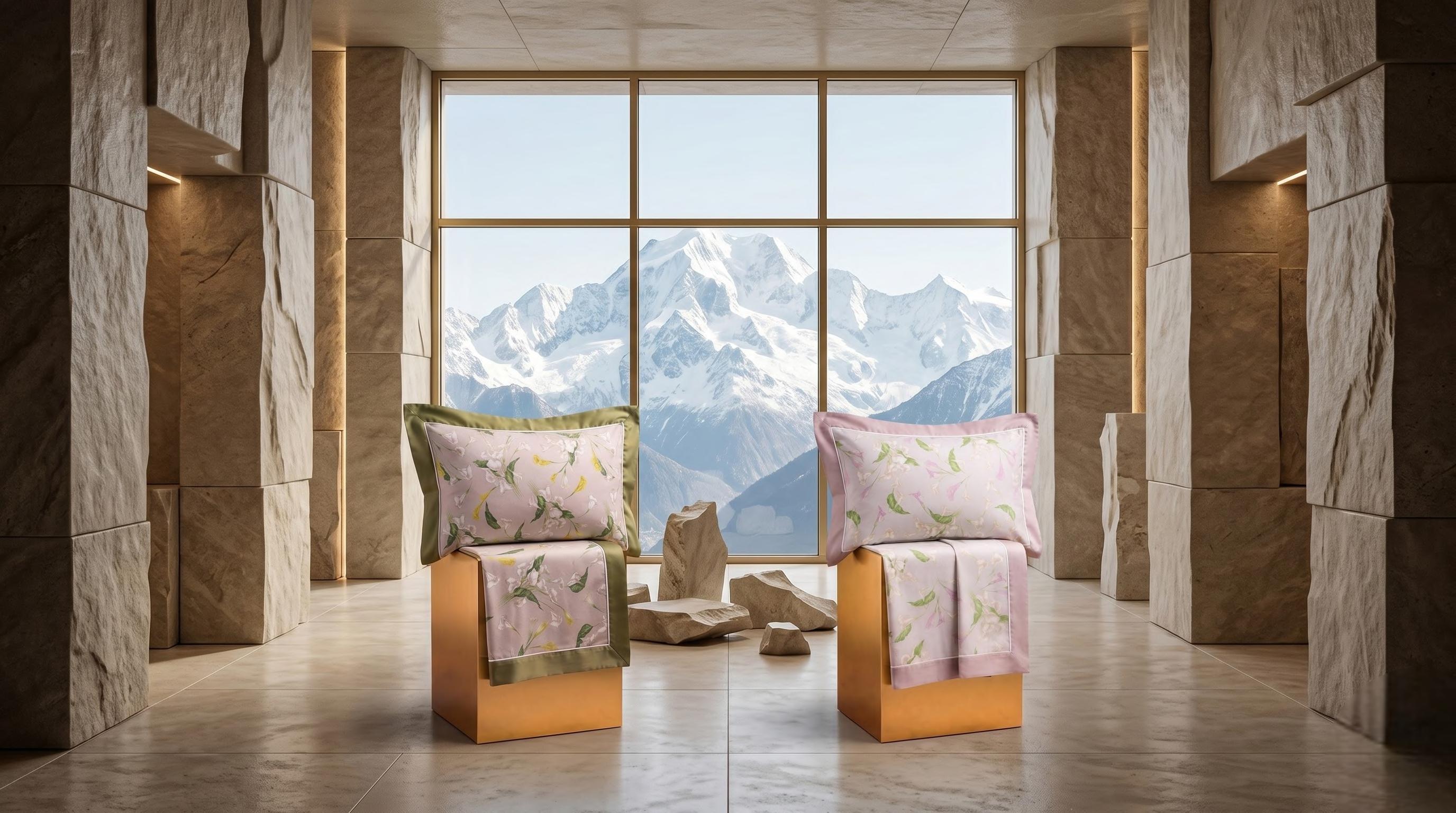 Immaginate un giardino rinascimentale scolpito nel Marmo di Carrara, adagiato sul silenzio infinito del deserto. Rinascimento è l’abbraccio impossibile tra la forza eterna della pietra e la carezza effimera di un petalo. Non è un lenzuolo, è un miraggio di benessere che prende forma tra le dune del riposo.