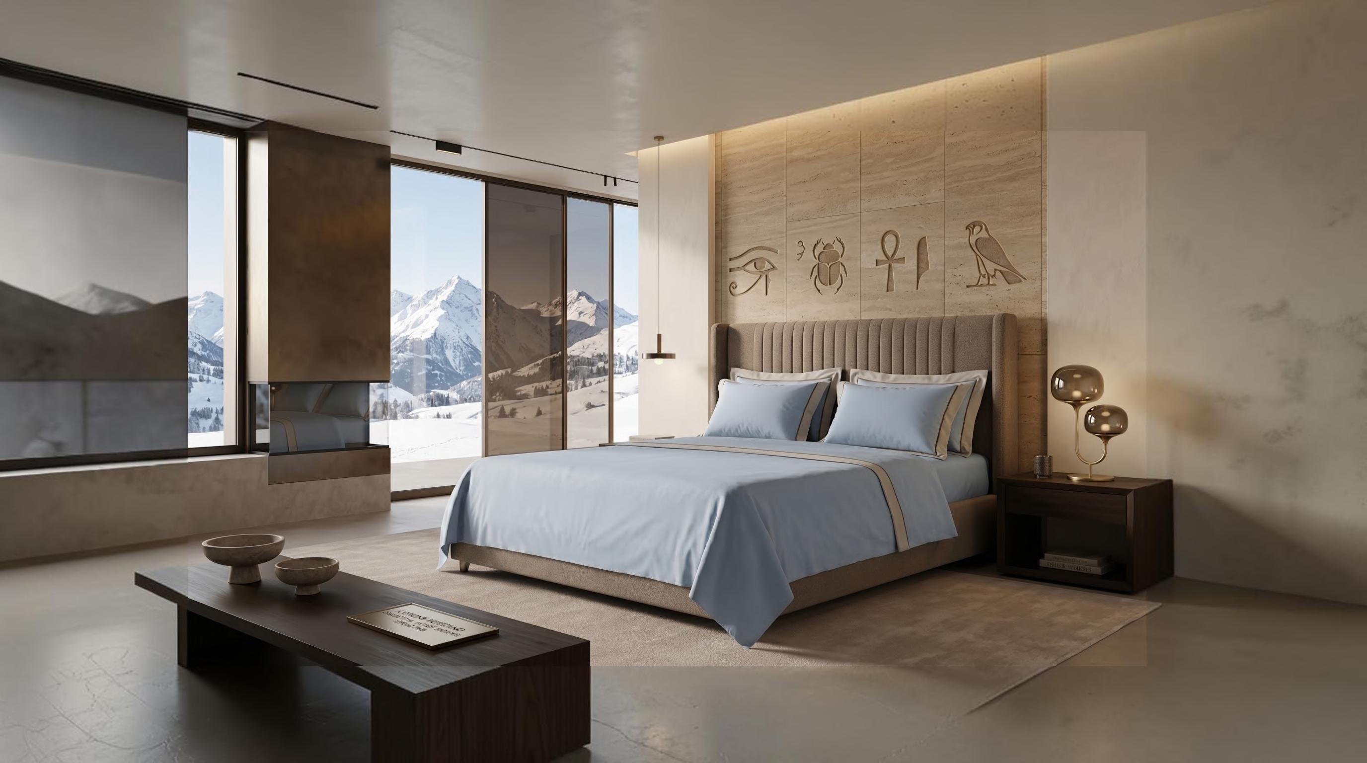 • The Touch: The noble soul of the finishing Cashmere blends with the purity of Egyptian Cotton, weaving a texture that feels crafted from light itself.