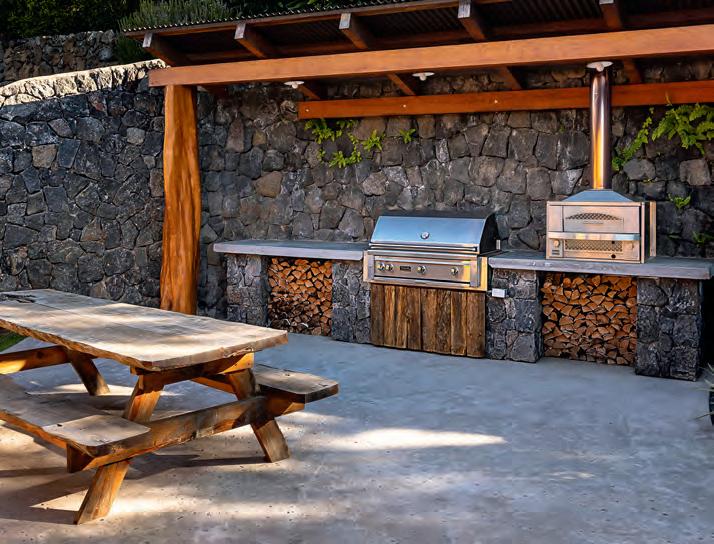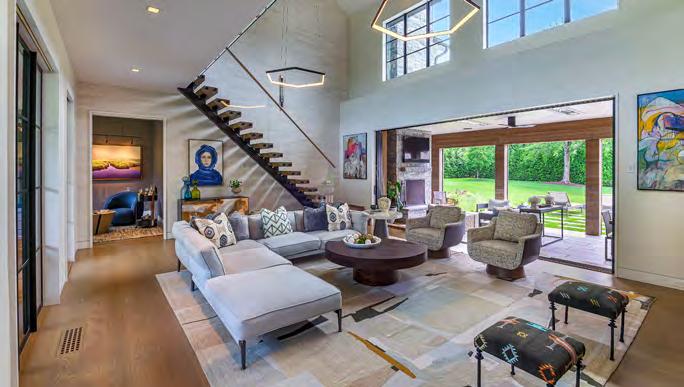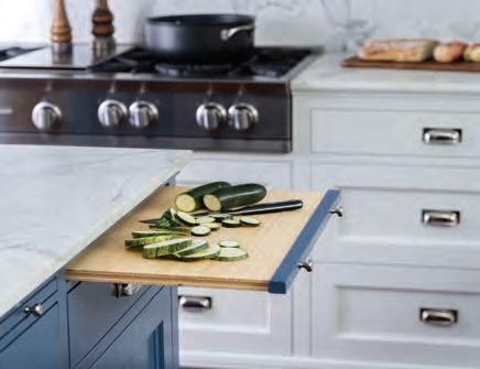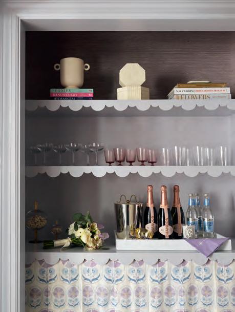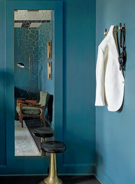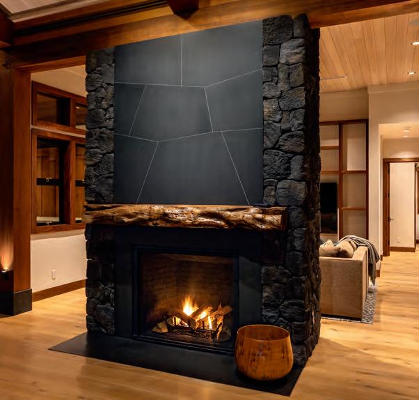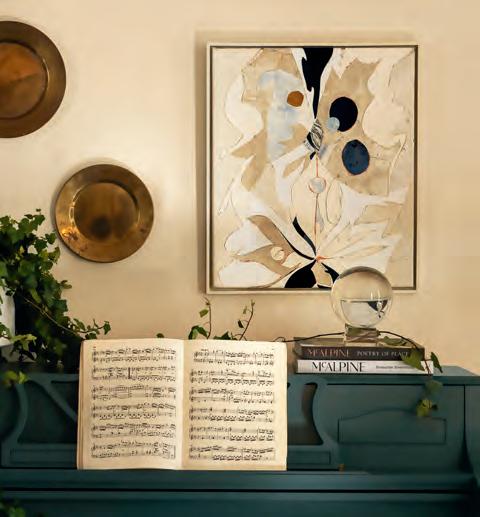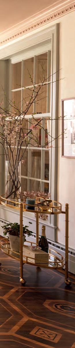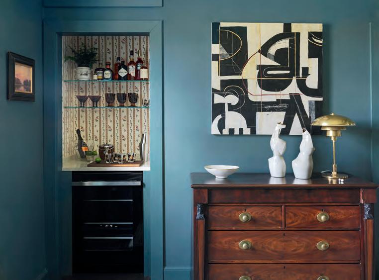 In the Drawing Room, a JennAir Noir built-in undercounter beverage center boasts dual zones and a 13-wine bottle capacity. The dark Obsidian finish is inspired by volcanic glass and lends a reflective, highcontrast note to the refrigerator’s interior. jennair.com.