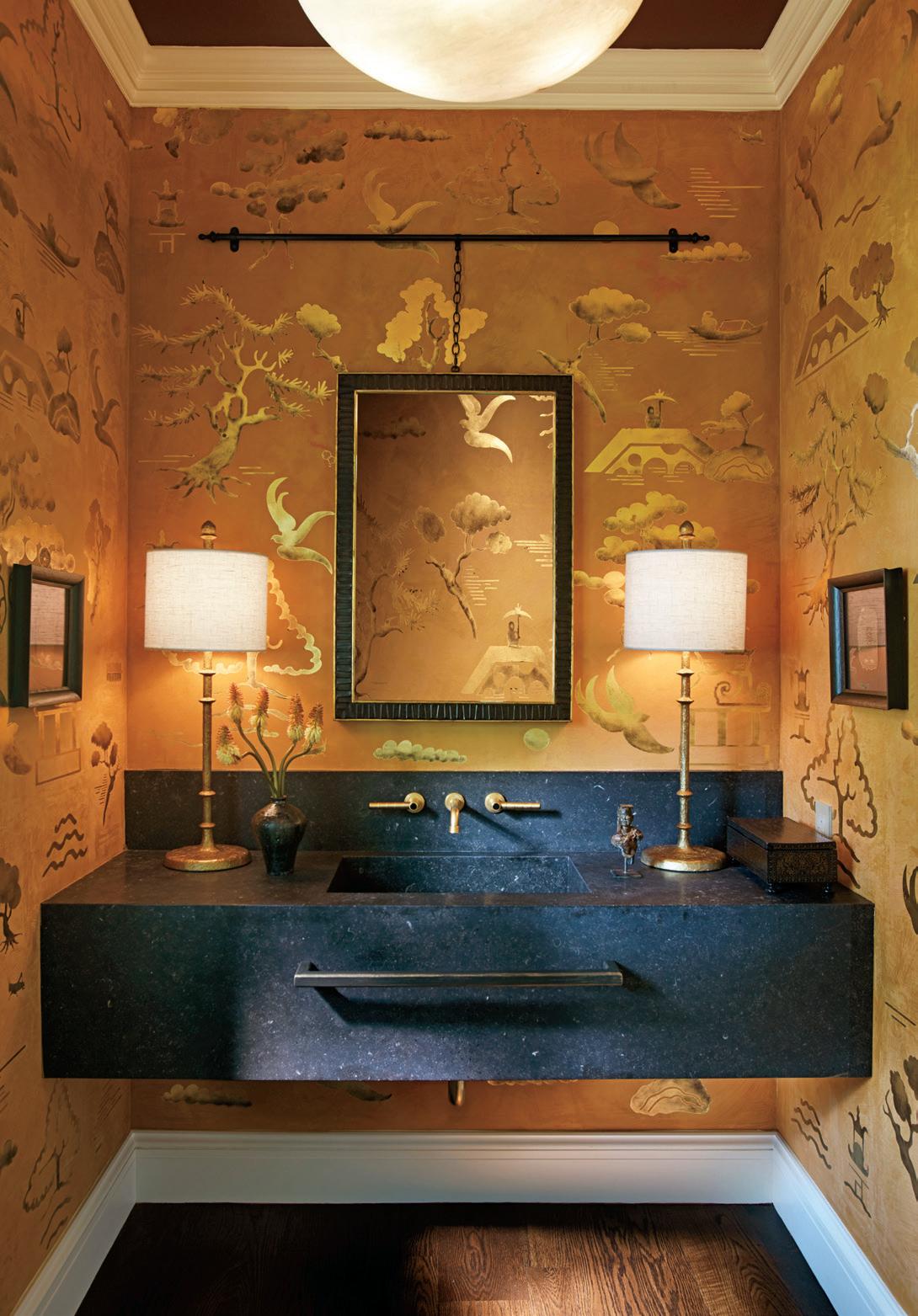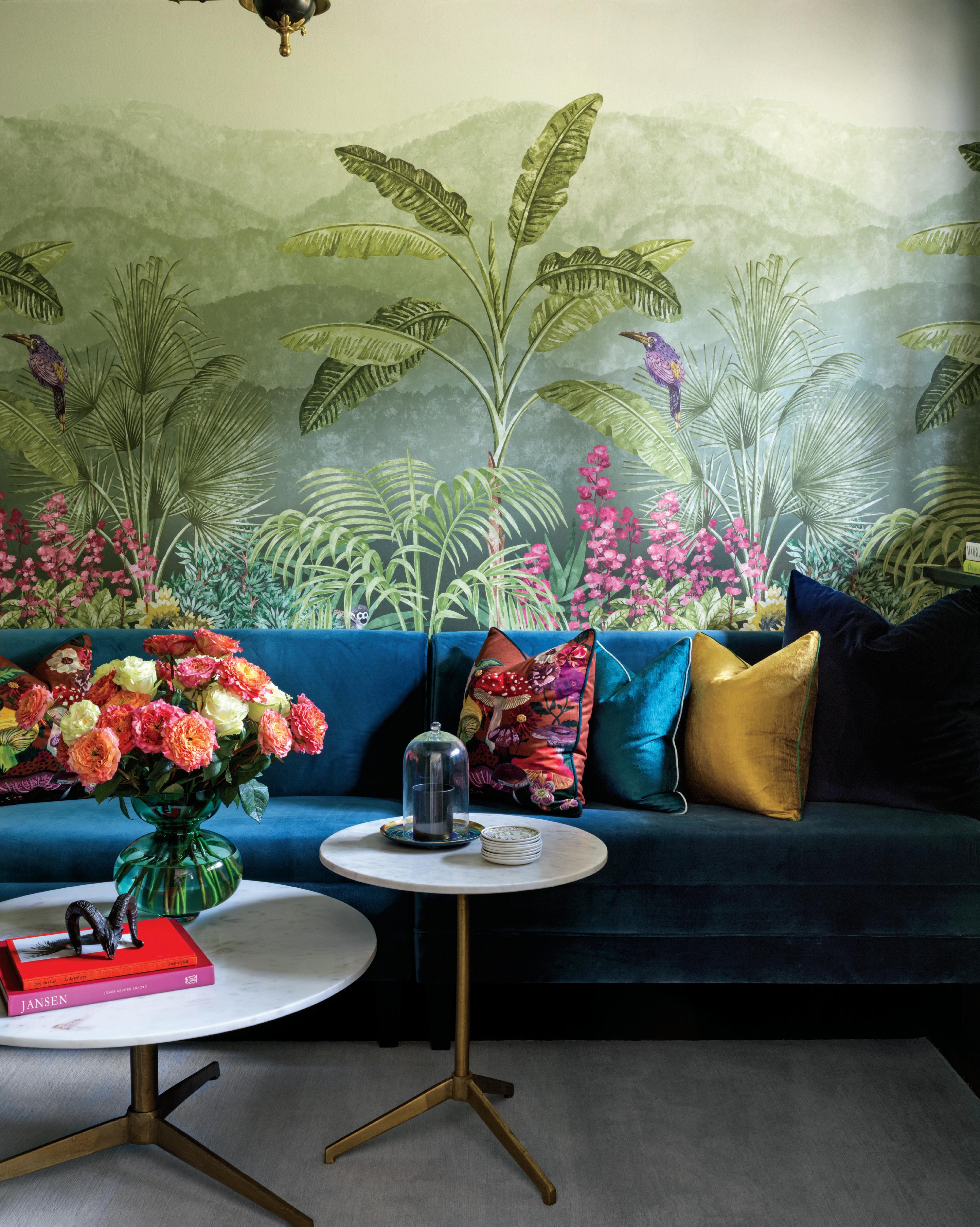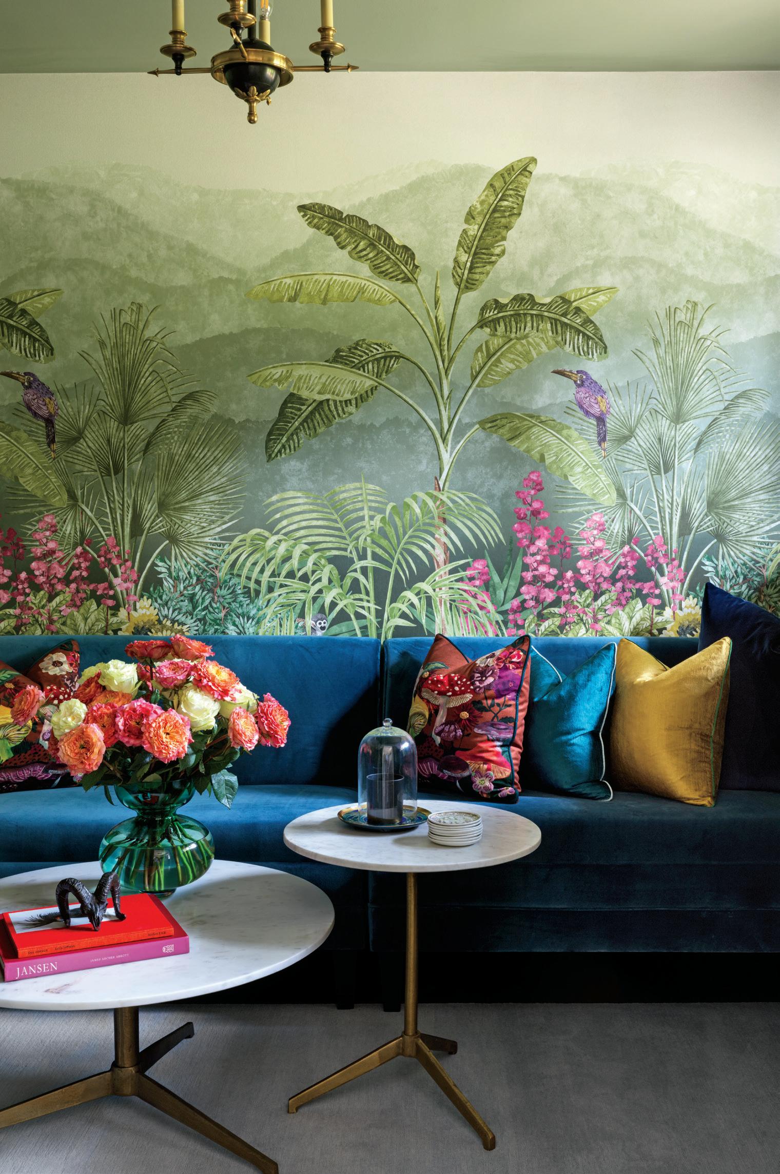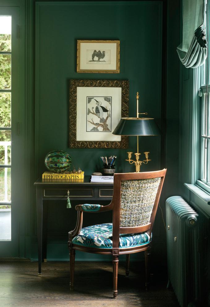 “I envisioned a room within the renowned San Francisco townhome of art collector Ann Getty (1941–2020) and reimagined Mrs. Getty’s adoration for 18thcentury furnishings. A hand-painted chinoiserie wallpaper by Fromental in the Paradiso pattern serves as the foundation of the room; turmeric-colored birds, flowers and trees sway languidly on a vibrant, teal silk ground. Surrounded by this jewel box, Mrs. Getty pauses for a quiet moment before joining her ladies in a Mahjong game room.”—Blake Funston, Blake Funston Interiors, blakefunston.com