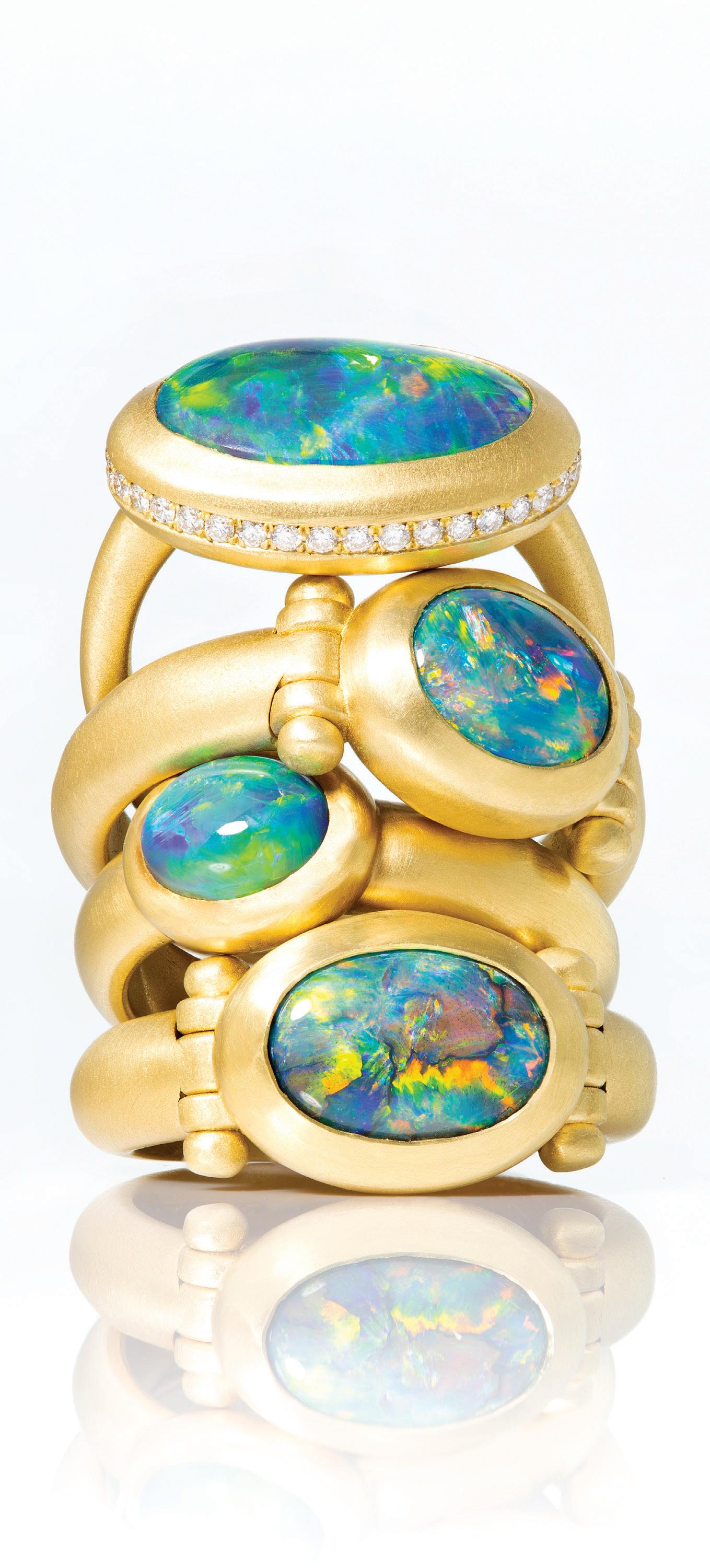 One-of-a-kind modern heirlooms set with luminous Black Opals from Lightning Ridge, Australia.