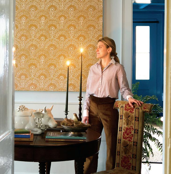 Called “the 20th century’s most influential female interior designer,” Sister Parish started her firm that became Parish Hadley back in 1933. Now, four generations later, literally, the company is thriving with the founder’s greatgranddaughter Eliza Crater Harris serving as Chief Creative Officer of Sister Parish Design. A St. Andrews graduate in art history and international relations, Harris grew up drawn to design. “The business of home, interior design, houses, was always a topic in my house. I think it’s really in my blood,” she says. After a decade of creating products and sets and arranging magazine shoots, in 2019, she signed on to oversee the firm’s goal of preserving and updating its classic textiles and wallpapers. She has always wanted to live in the country and resides with her husband and two toddlers near the company offices in Litchfield in a white clapboard house with a keepsake caged wooden bird that once hung in her great-grandmother’s Fifth Avenue apartment. sisterparishdesign.com.