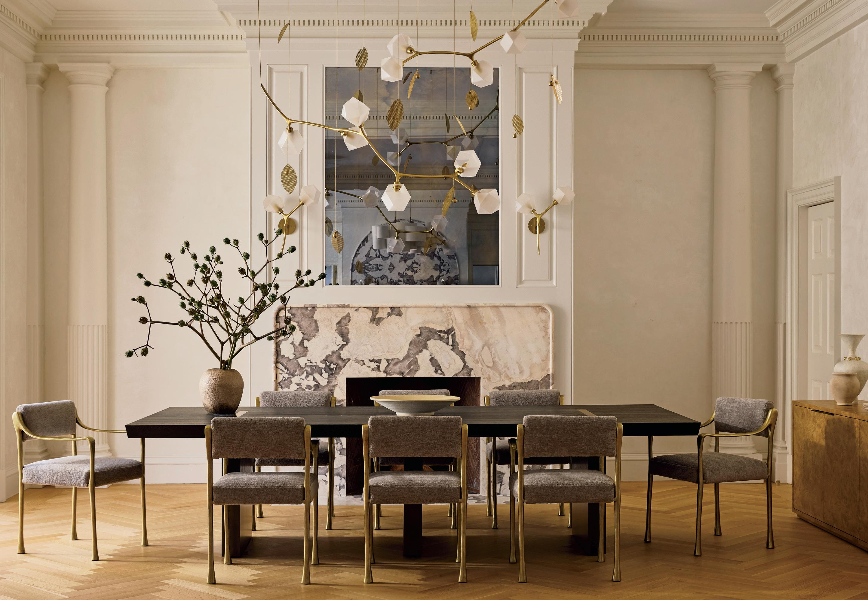 “My vignette celebrated artisans and highlights the value of craftsmanship through a richly layered interior. I wanted to create an intimate lounge with a warm, enveloping setting for handfinished furnishings, sculptural lighting and curated artwork. The custom wood chairs with woven leather strapping and brass accents were central to the concept, emphasizing the beauty of handwork and construction. Within the theme ‘For the Greater Good,’ the space reflects the importance of supporting artisan communities and preserving craft traditions through intentional design.”