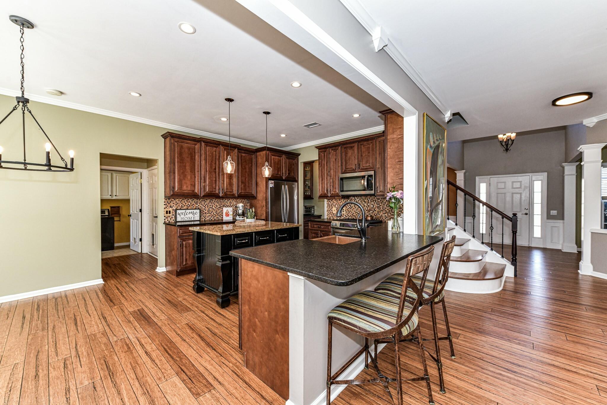 Asyou enter thispristine homeyou?regreeted bybeautiful bamboo floors,aspaciousopen floor plan Stunninggourmet kitchenwith 42" soft closecabinetrycontinuinginto the butler?spantry,a5 burner gasstove,acustom island and awalk-inpantry Bamboo floors continueup thestairsinto thehallway,all bedroomshavenewcarpet.The primary bedroomisatrueretreat withupgraded bath and acustomwalkincloset,whilethelarge bonusroomcanalso be used asabedroom Outsideaprivatefenced back yard with gorgeousextended patio and charmingshed, blueberriesand blackberriestastefullyplanted alongthesideof thehouse,and thegarage featuresaninsulated door & spacefor a workbench Theneighborhood hasamazing communityamenitiesincludingapool, clubhouse,playground and tennis,aswell as sidewalks.Top rated schoolsand afabulous location betweenStonecrest and Blakeneyoff ReaRoad It?sevenwired for GoogleFiber up to 2GB.Not to be missed!