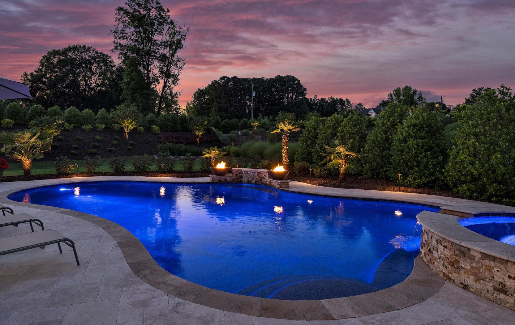 Spectacular outdoor oasis offering endless possibilities for leisure and entertainment, where every amenity is designed to elevate your outdoor living experience. Whether hosting extravagant gatherings or enjoying intimate moments with friends and family, this haven offers lush, professional landscaping, highlighted by brand new landscape lighting, covered rear porch with retractable screen, custom heated salt water pool and spa, dramatic fire bowls, a fire pit, and a covered cabana with a full kitchen that leaves nothing to be desired.