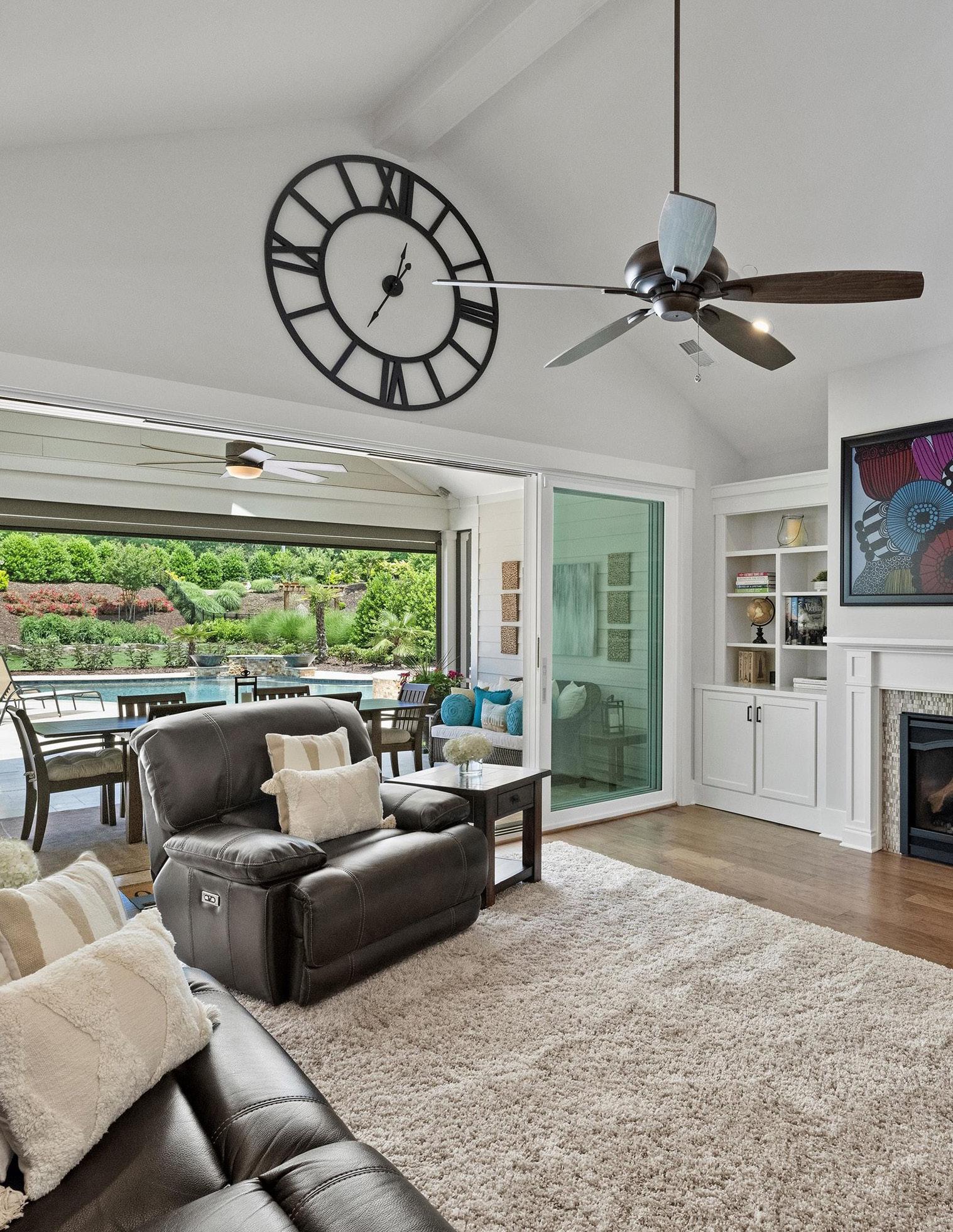 Gorgeous eat in kitchen with massive center island featuring seating for six, custom cabinets, some with glass fronts and in cabinet lighting for display, custom backsplash, Wolfe and Sub Zero appliances, pot filler, under cabinet lighting and outlets, pantry, and beautiful fixtures open to great room with fireplace, built in cabinetry and two sets of panoramic doors (one in breakfast area and one in great room) which open fully to bring the outside in.