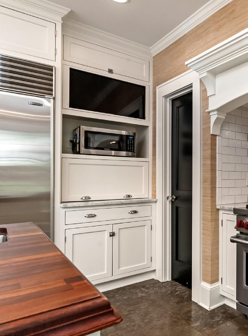 • Custom bar with marble countertop, mirrored backsplash and upper cabinetry with glass fronts