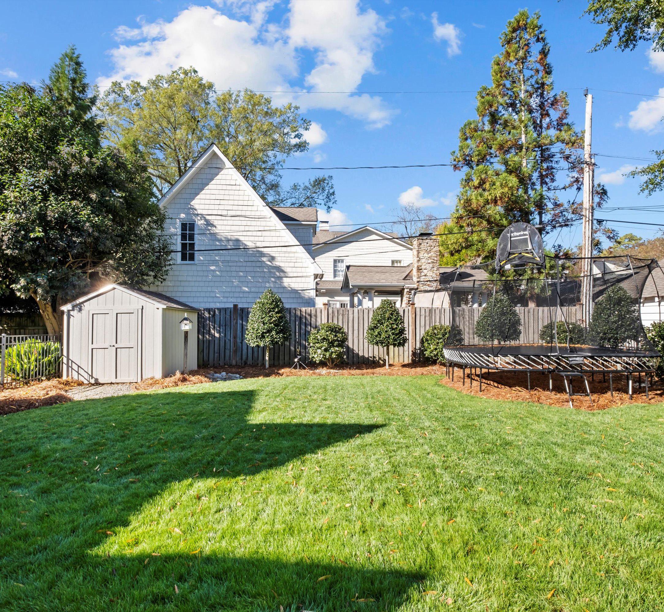 • Rear brick patio overlooks the pristine fullyfenced yard with professional landscaping and storage shed