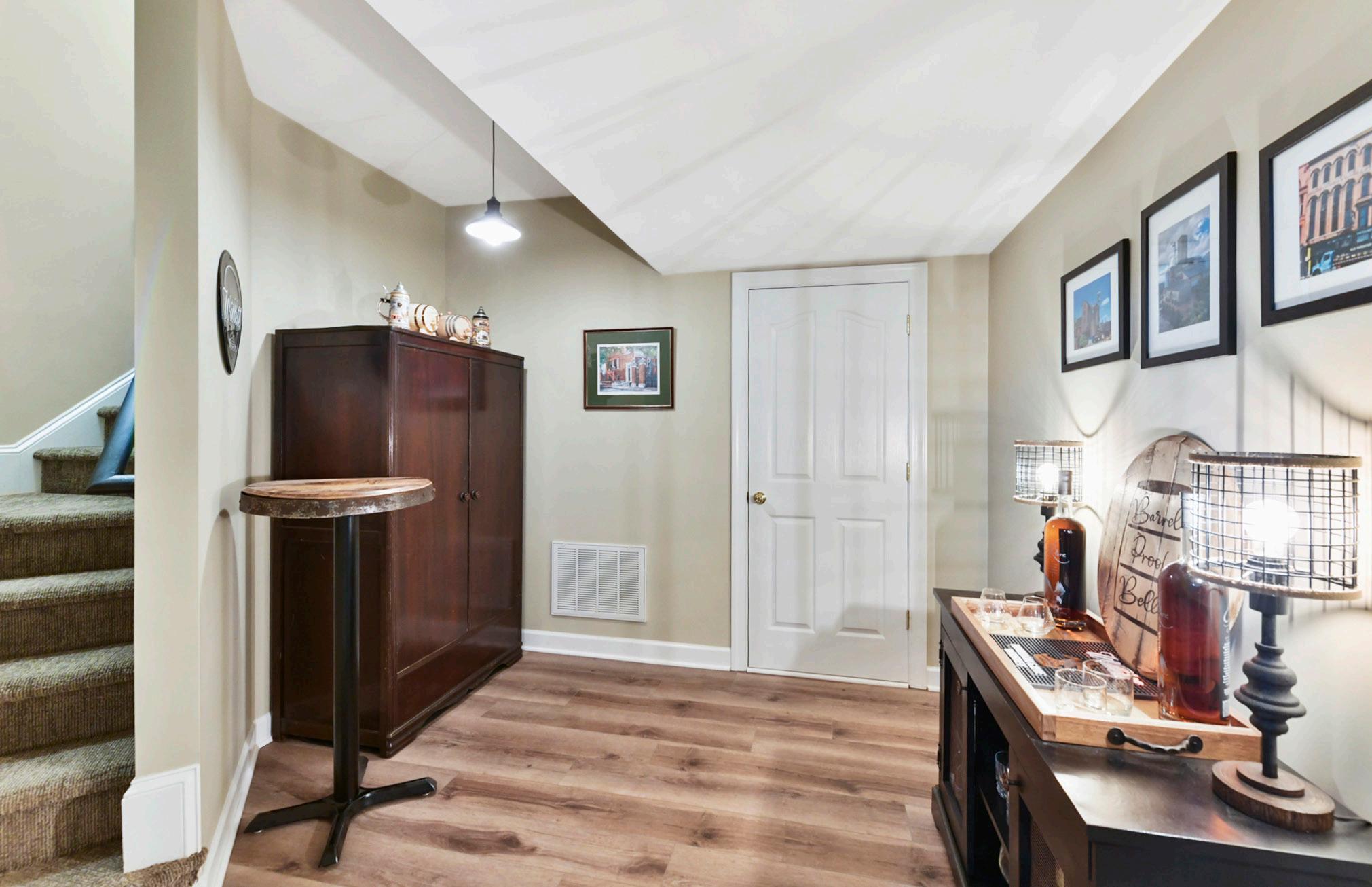 Upstairs the primary suite features a tray ceiling, reading nook and two closets with a lovely bathroom featuring rimless shower door and relaxing tub. The bonus room is huge with a bar counter and lots of room for fun. Basement features include a large living area, a bedroom and full bath, plus 807 sq ft of unfinished space that is partially framed into rooms. The back yard has been terraced into two large flat spaces and is fenced with irrigation; the woods are so peaceful.