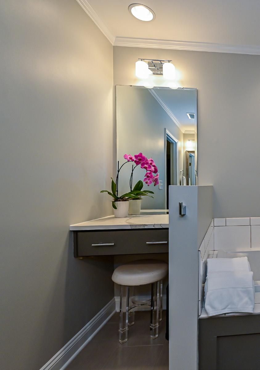Luxuriate in the renovated full bath which offers a soaking tub, a double sink vanity with drawer space below, double mirrors, a separate vanity table and a large walk-in shower with seamless glass enclosure.