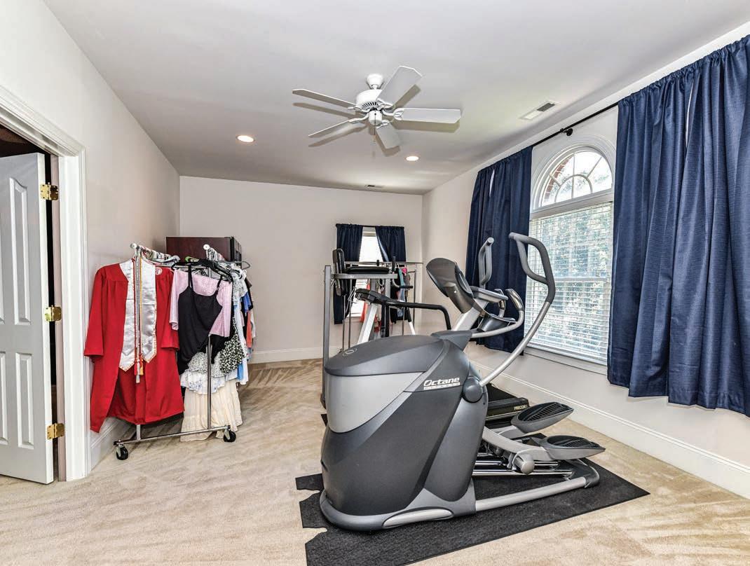 • Additional bonus room currently being used as an exercise room. The elliptical, treadmill, and push out bar convey.