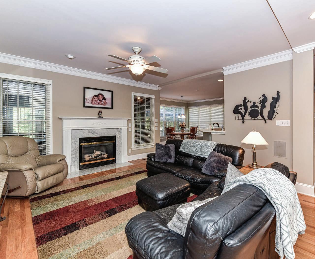 • Spacious formals plus Great Room with gas log fireplace and surround sound. Wall mounted television conveys. Formal living area has built-in shelving and cabinetry.