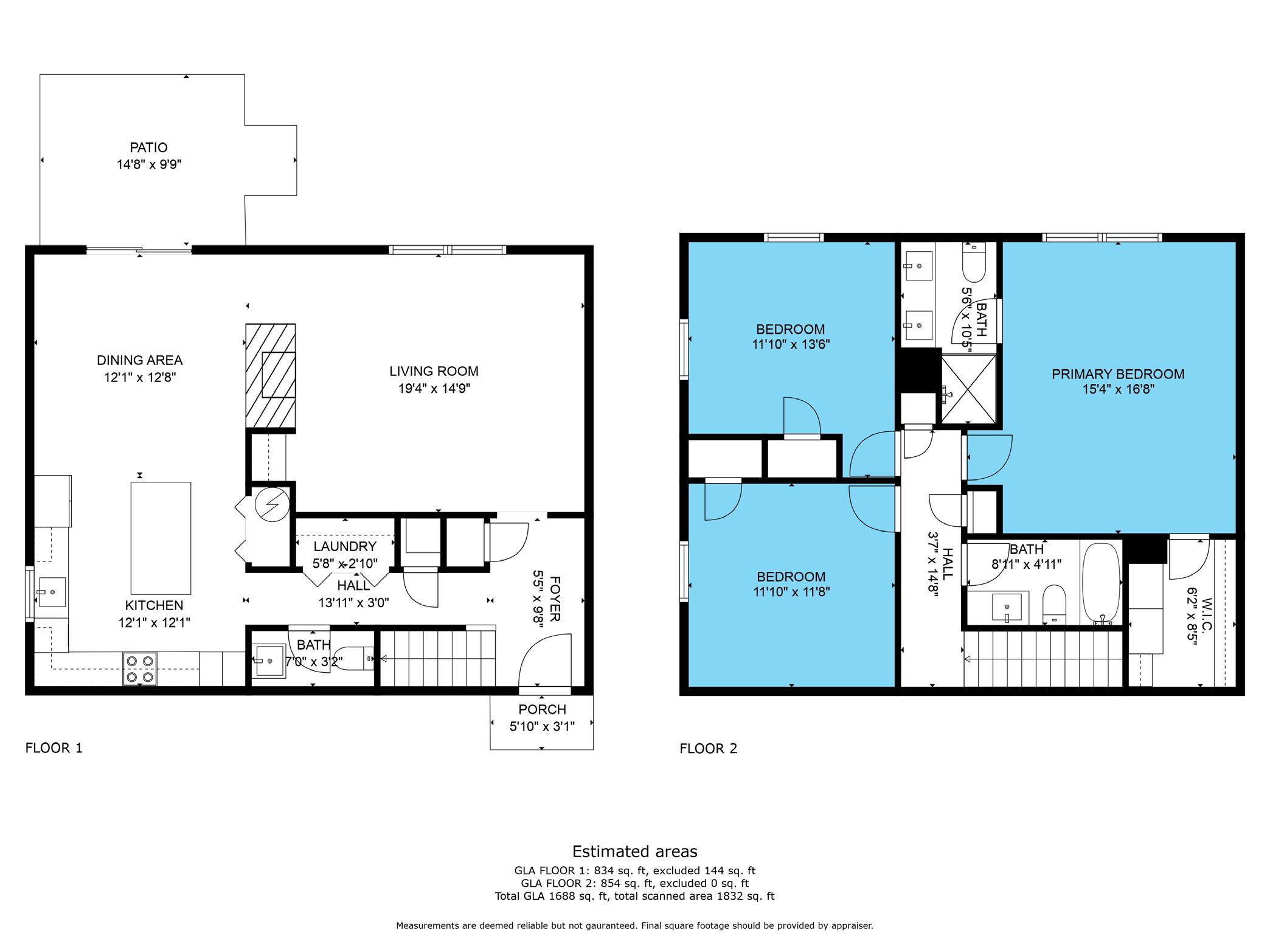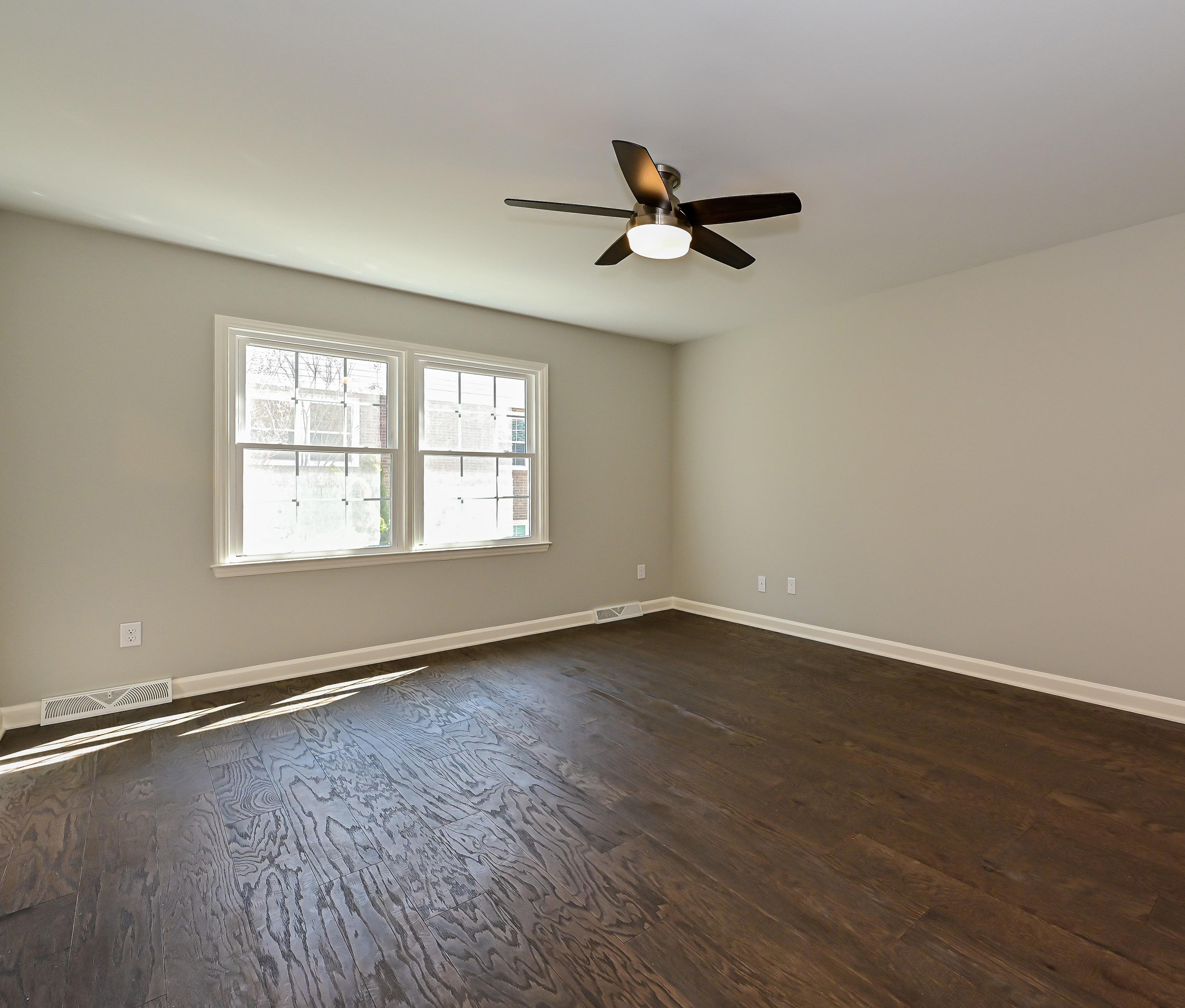 Both rooms are spacious and overlook the backyard. Both have wood flooring, lighted ceiling fans, windows, and closets.
