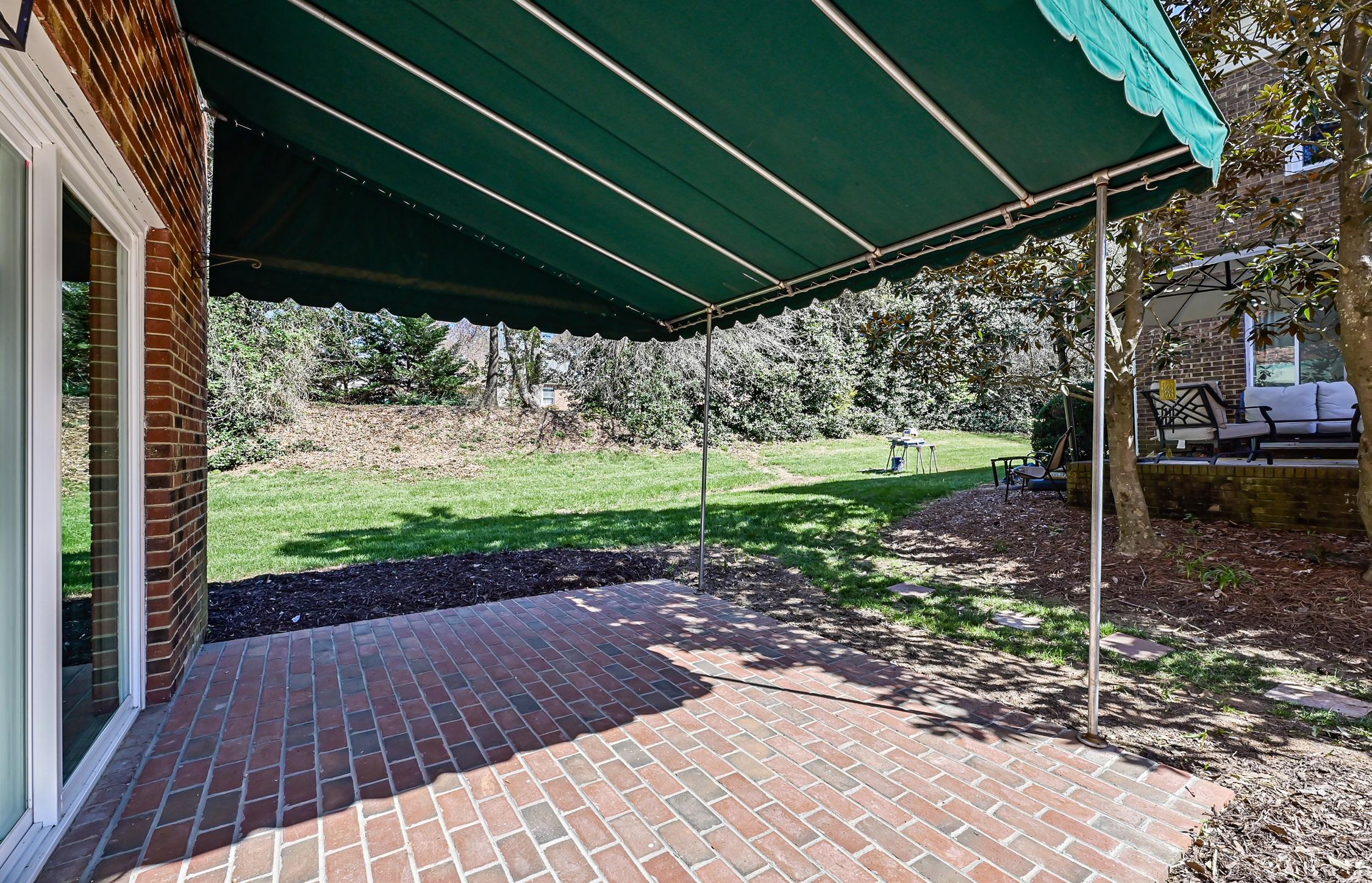 Located at the tree lined, back yard. Enjoy al fresco dining or just time spent on the brick paver patio. The covered awning will help protect you from the sun.