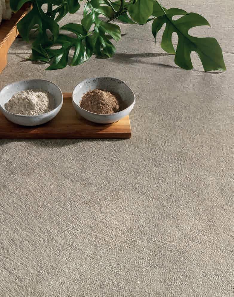 Alla texture ricca di dettagli minerali si combina una fitta tramatura che solca la superficie e ne esalta l’appeal materico e il senso di autenticità dell’effetto pietra.