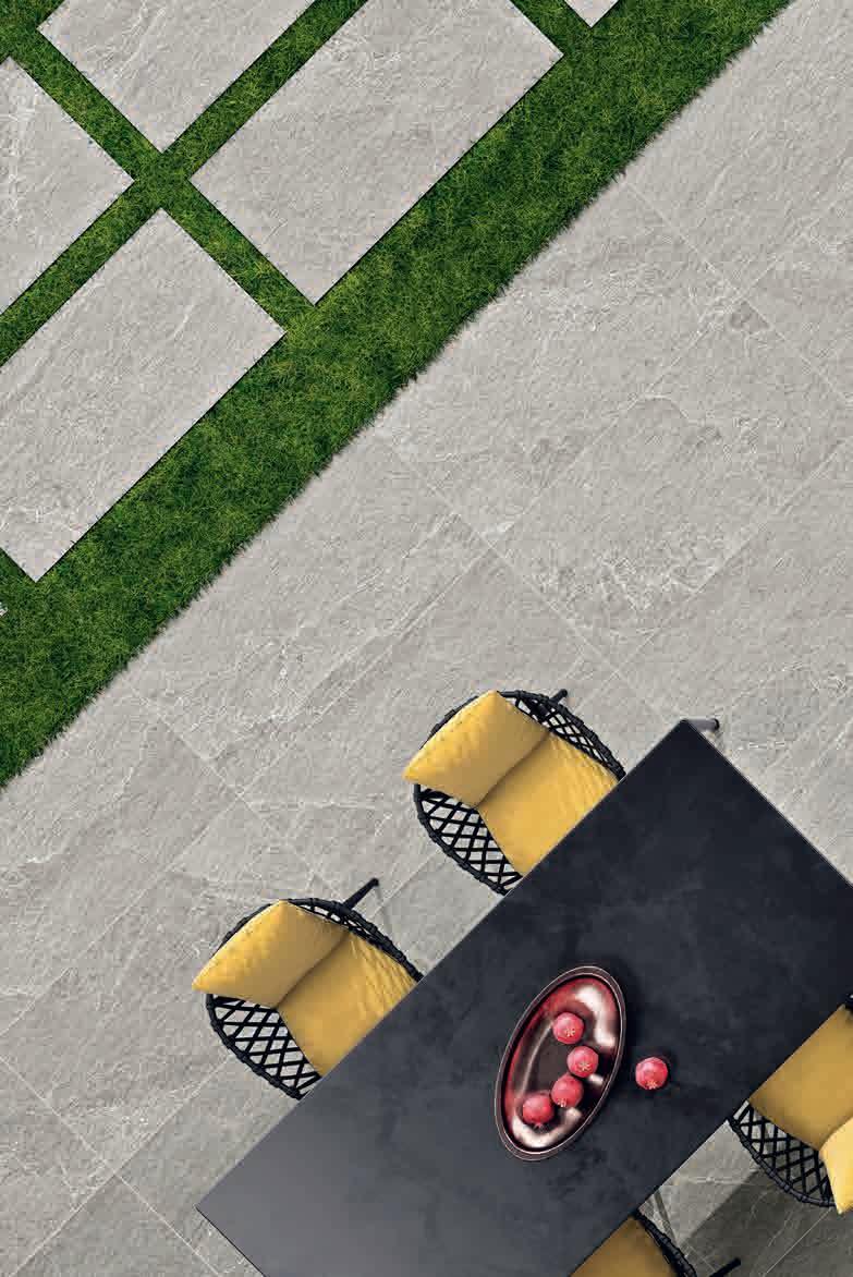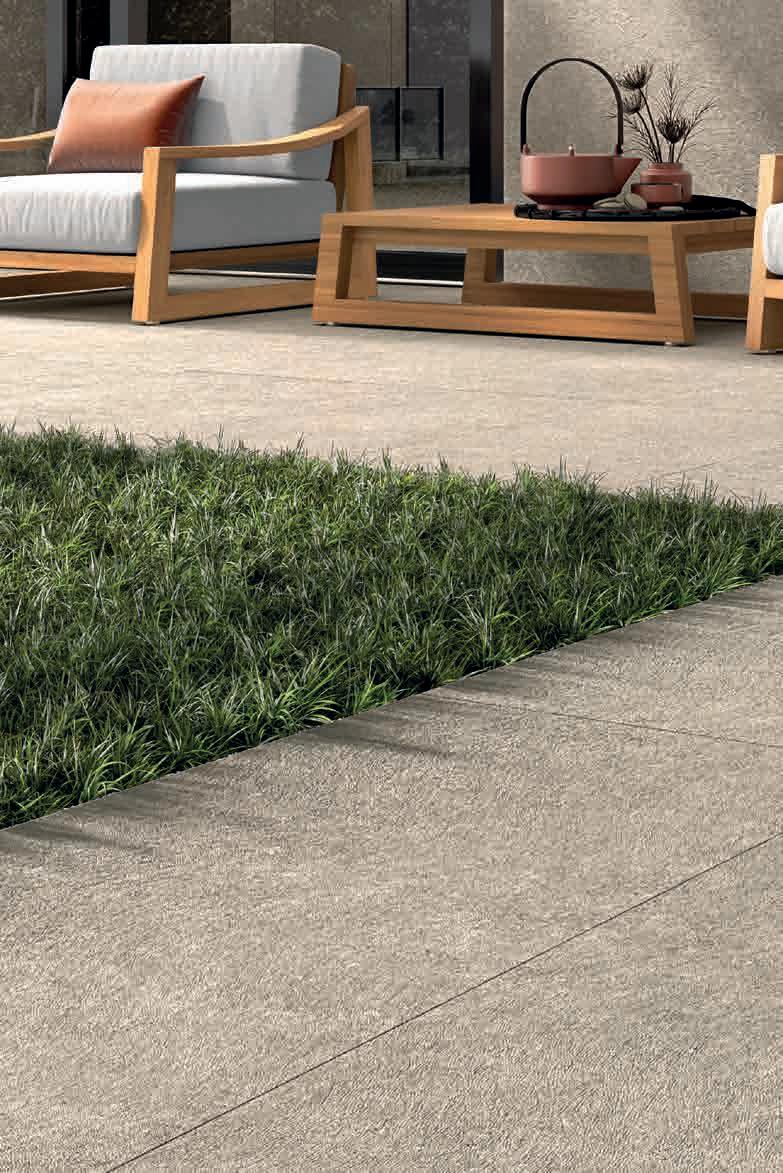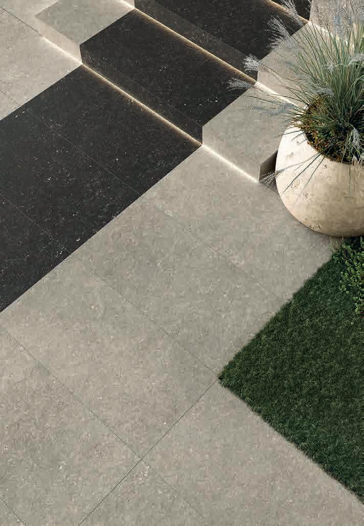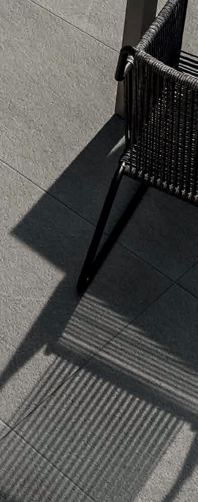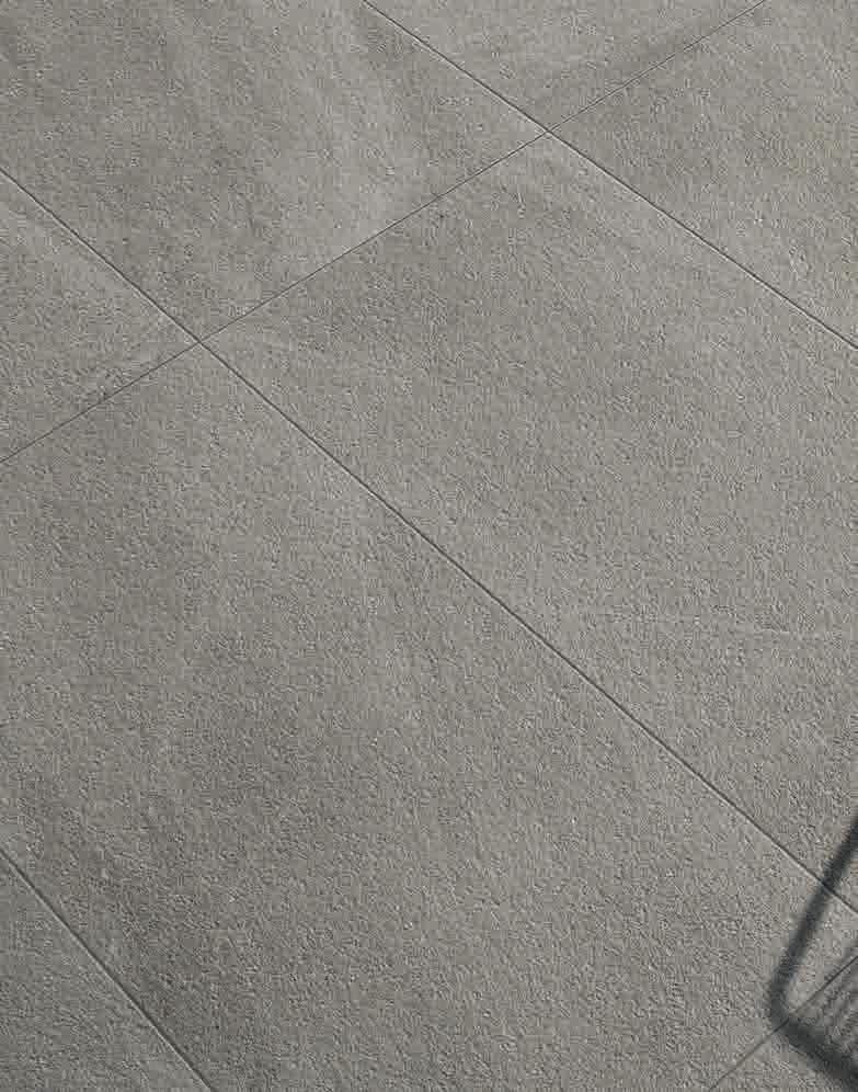 This finish with a distinctly rough structure achieves a degree of slip resistance of R12-C, ideal for any outdoor flooring. The texture, rich in mineral details, is combined with a dense pattern that furrows the surface and enhances its material appeal and the sense of authenticity of the stone effect.