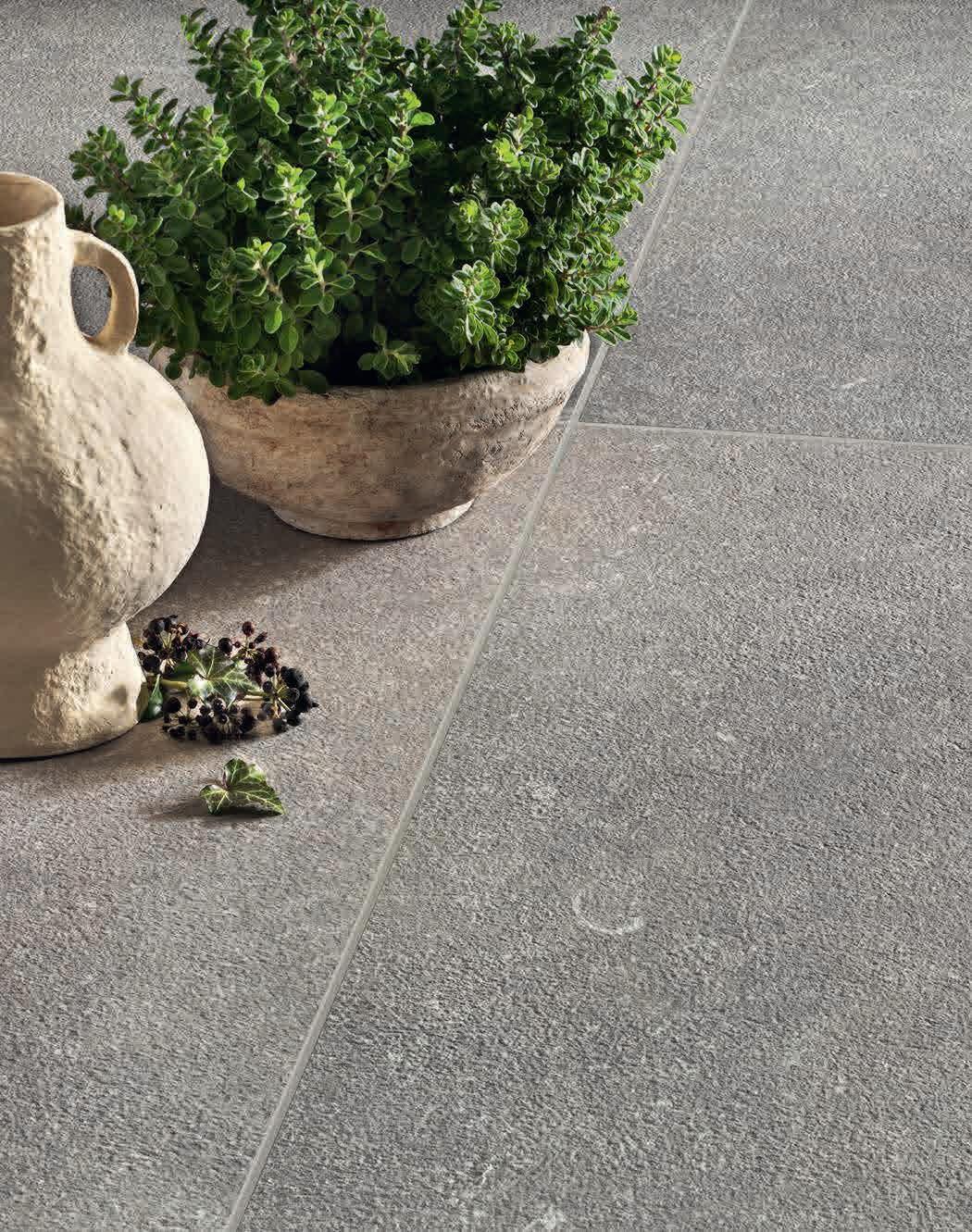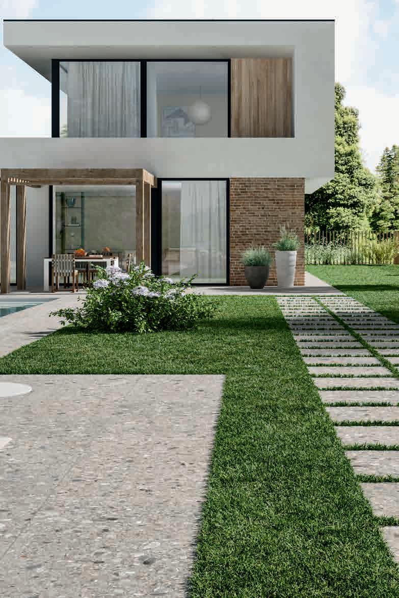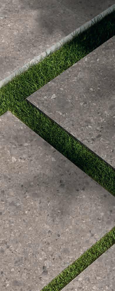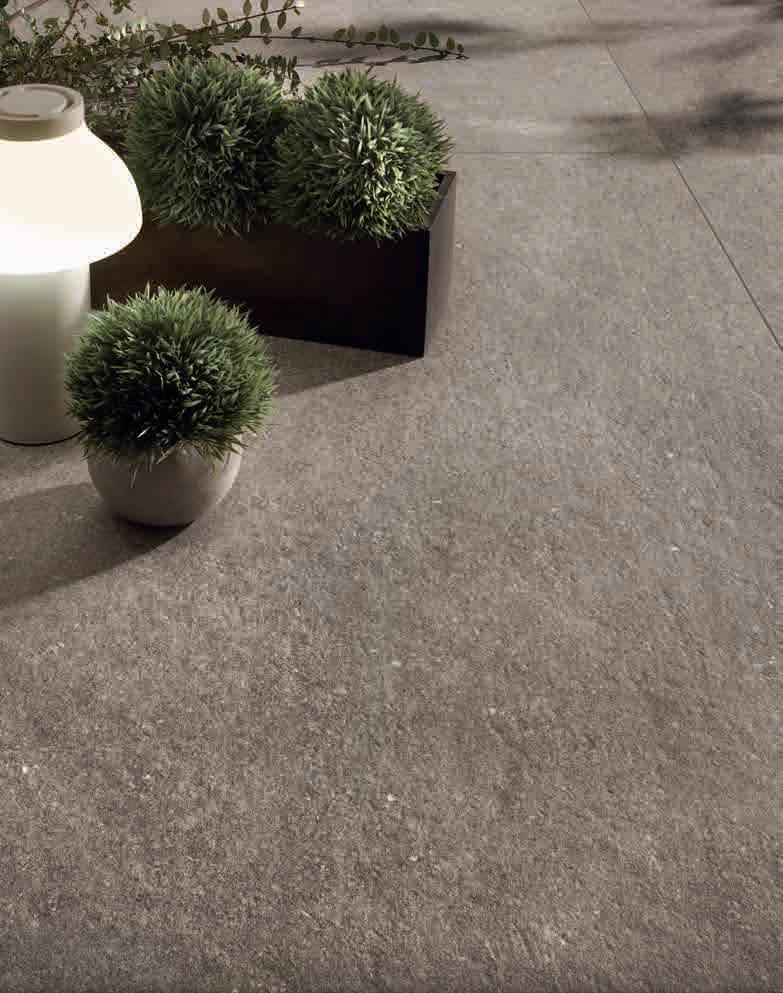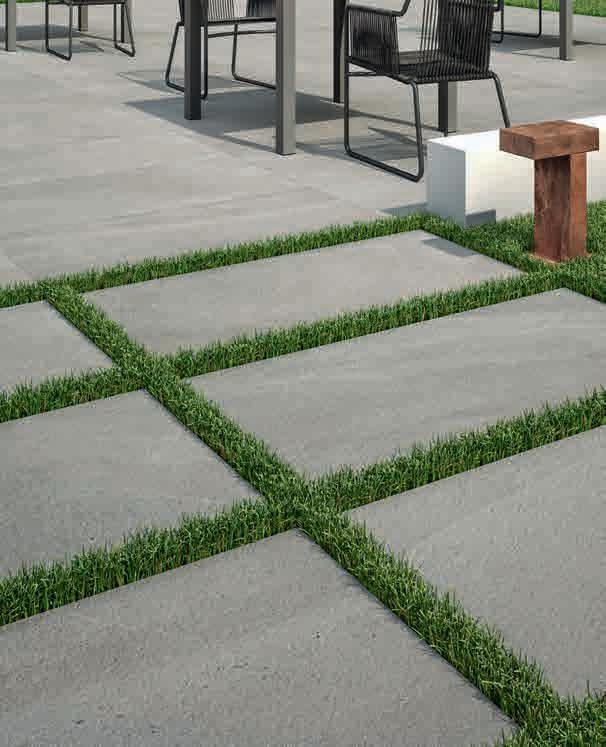This finish with a distinctly rough structure achieves a degree of slip resistance of R12-C, ideal for any outdoor flooring. The texture, rich in mineral details, is combined with a dense pattern that furrows the surface and enhances its material appeal and the sense of authenticity of the stone effect.