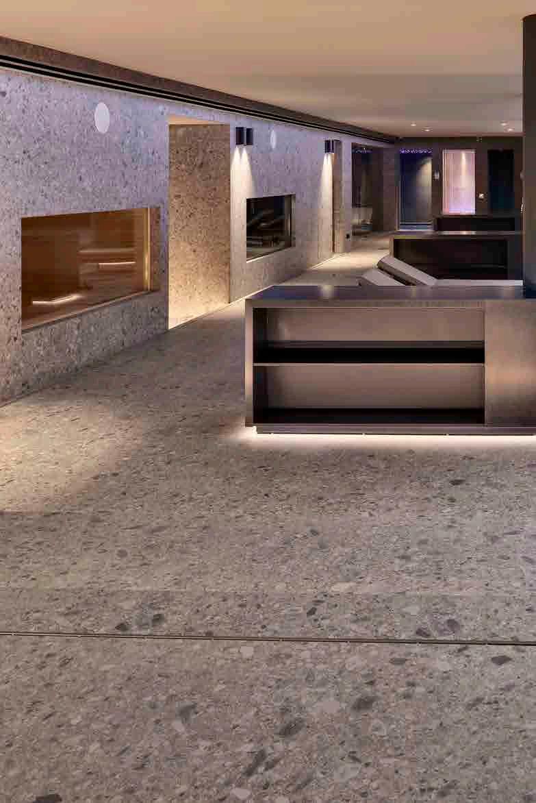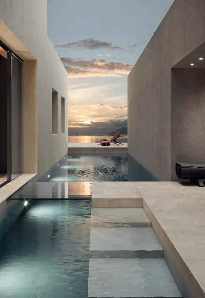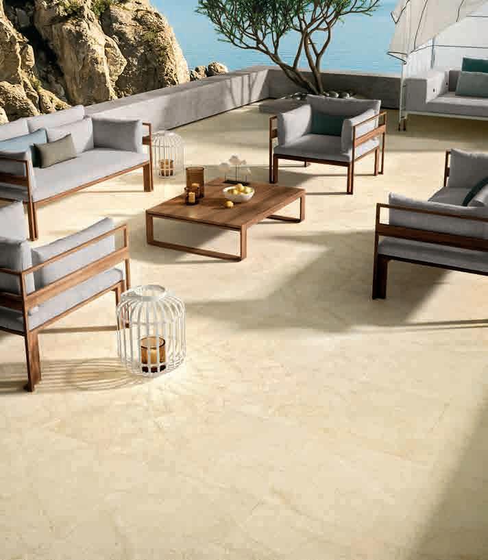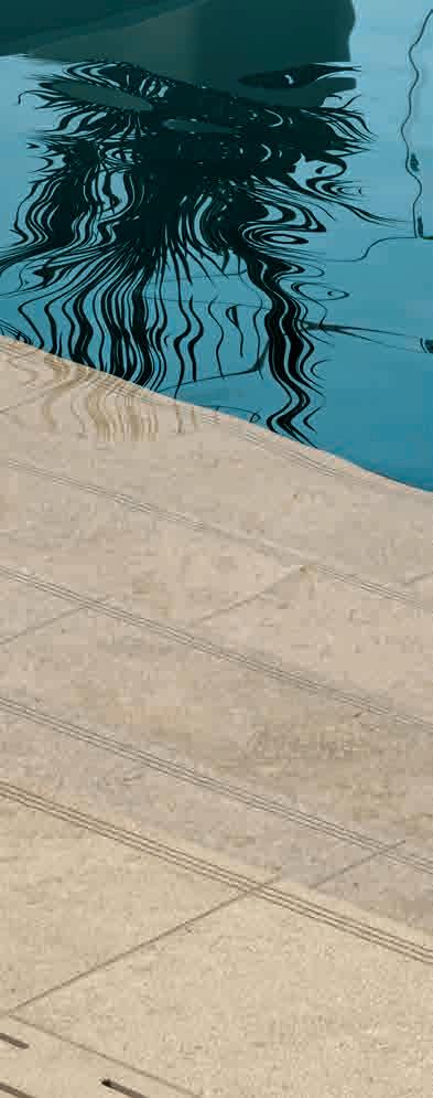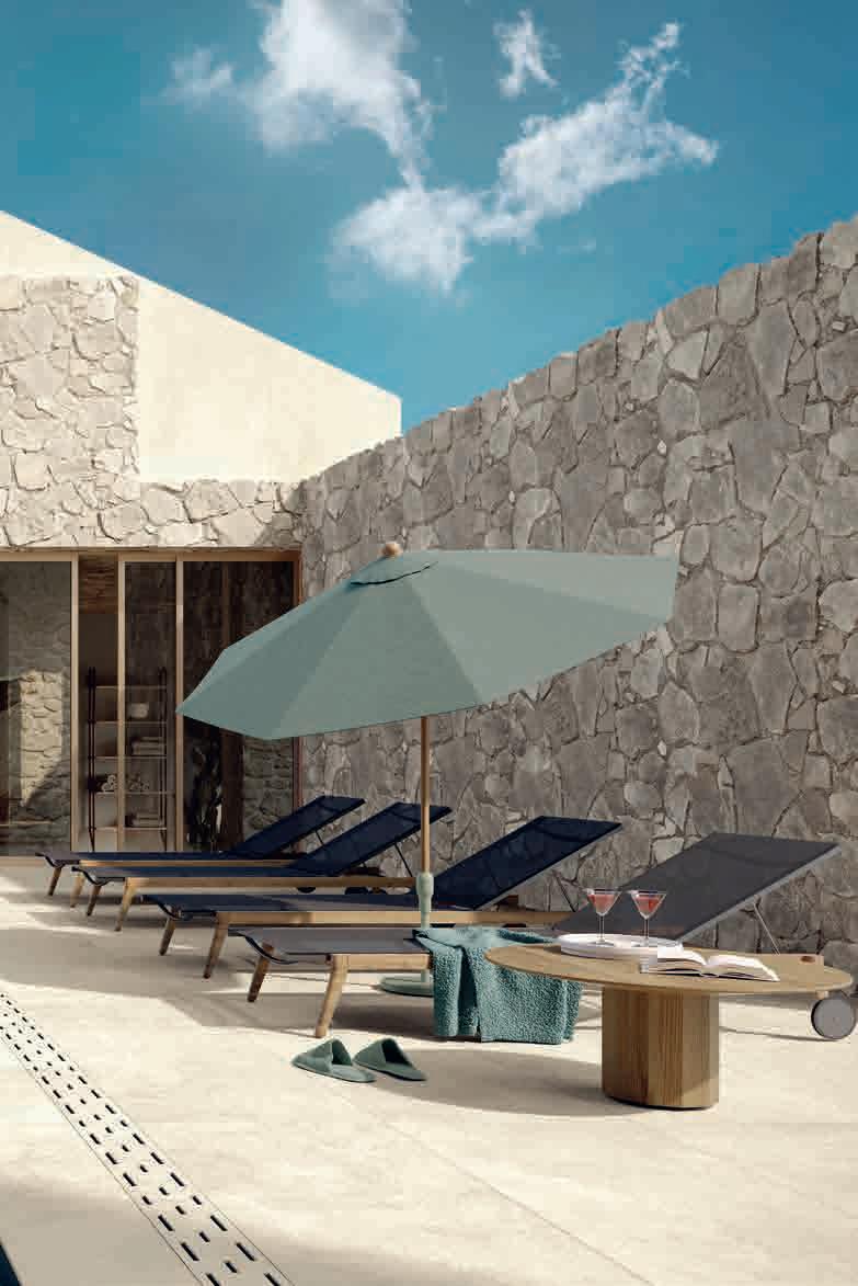 This finish recalls the surface of slate, which features a characteristic ruggedness that highlights the natural appearance and maximises the product’s anti-slip performance (R11C). The surface characteristics and increased thickness (20 mm) make this the perfect material for high-end outdoor contexts, in which the best technical performance must be accompanied by the highest aesthetic standards.