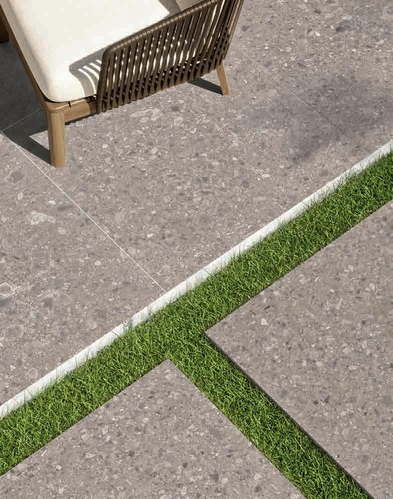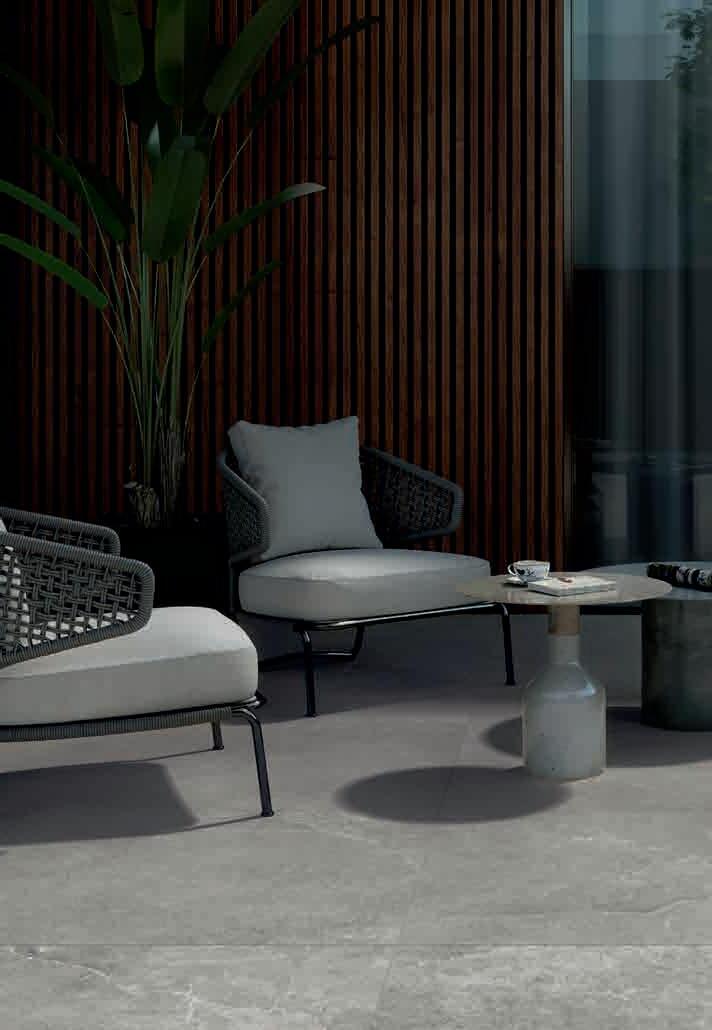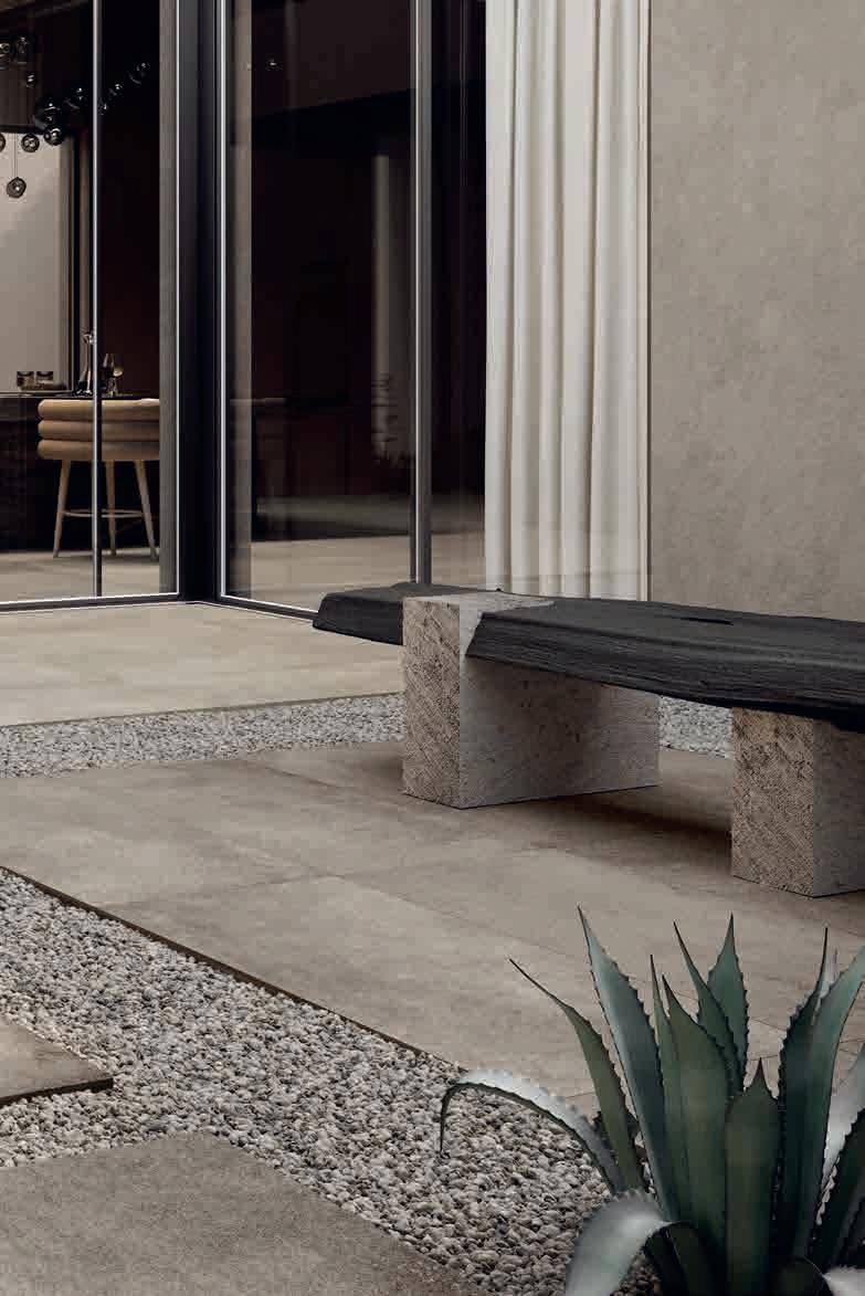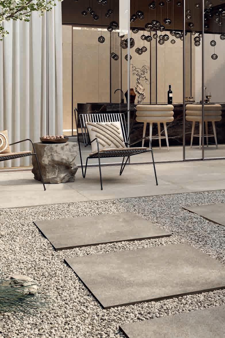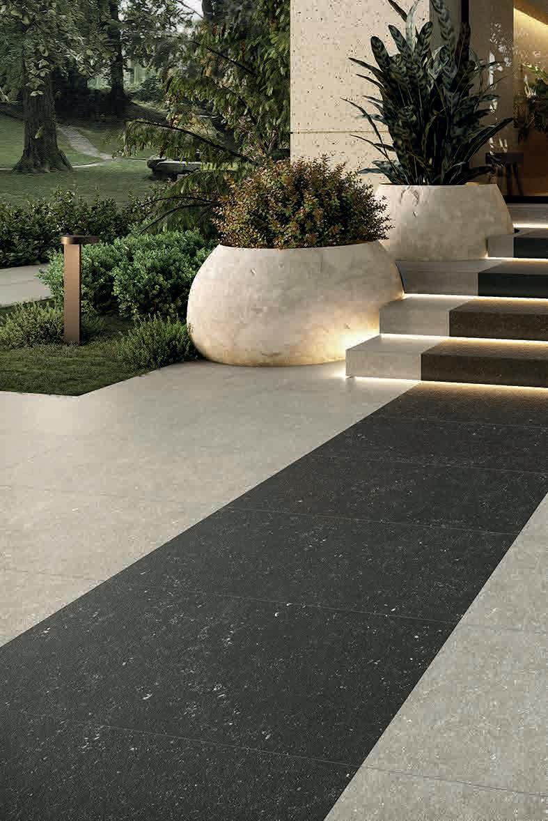 Ideal for outdoor environments, it combines an intense, sculpted aesthetic with high-level anti-slip performance (R11-C), guaranteed even in wet conditions.