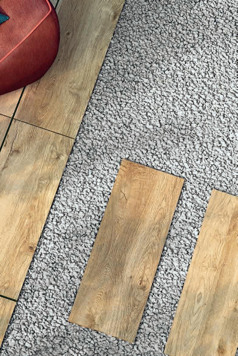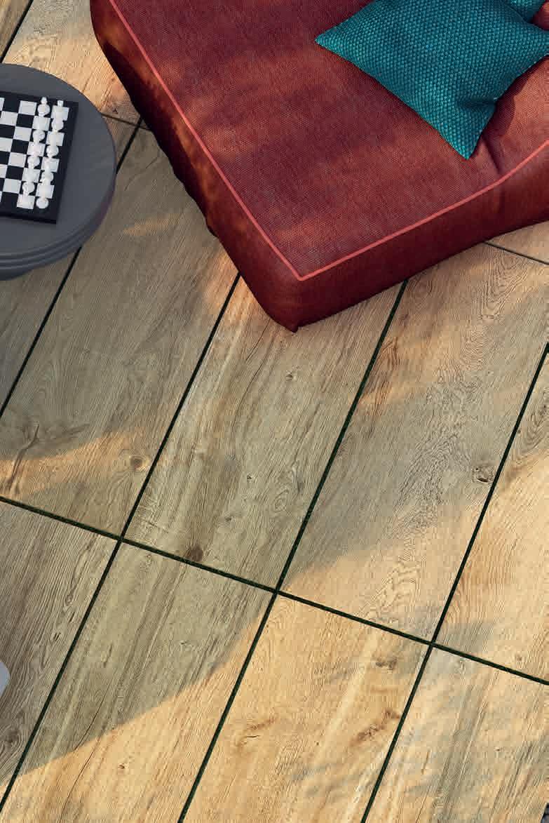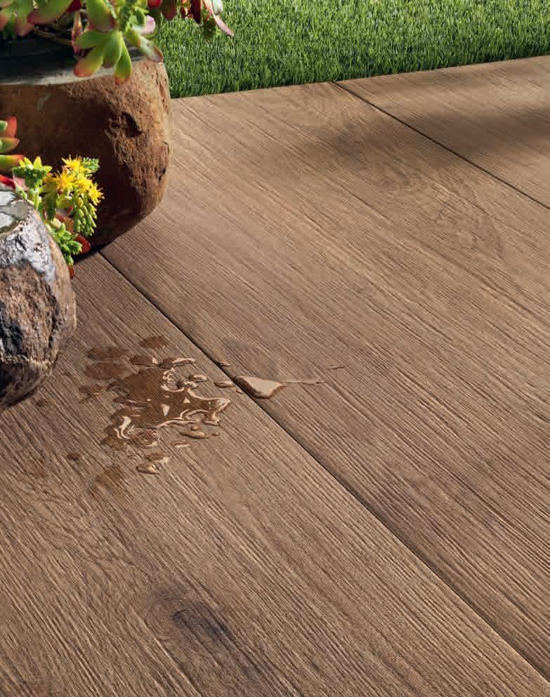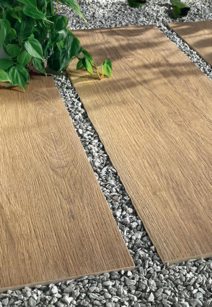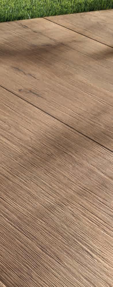 Rustic is a finish specifically designed for the 40x120 cm, 20 mm thick, plank format. The exceptional slip-resistance of this outdoor surface is achieved by accentuating the natural texture of the wood grain, thus maintaining its realism.