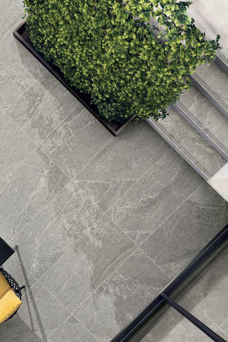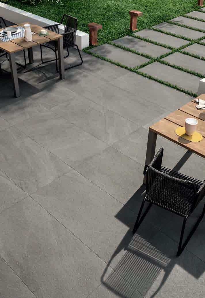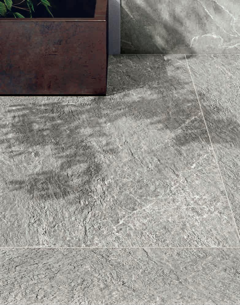 Richiama la superficie dell’ardesia a spacco, dotata di una caratteristica scabrosità che ne esalta l’aspetto naturale e ne massimizza la performance di anti scivolosità (R11C). Le caratteristiche superficiali e lo spessore maggiorato di 20 mm rendono questo materiale perfetto per contesti outdoor di pregio, in cui la miglior performance tecnica deve essere accompagnata dai massimi standard estetici.