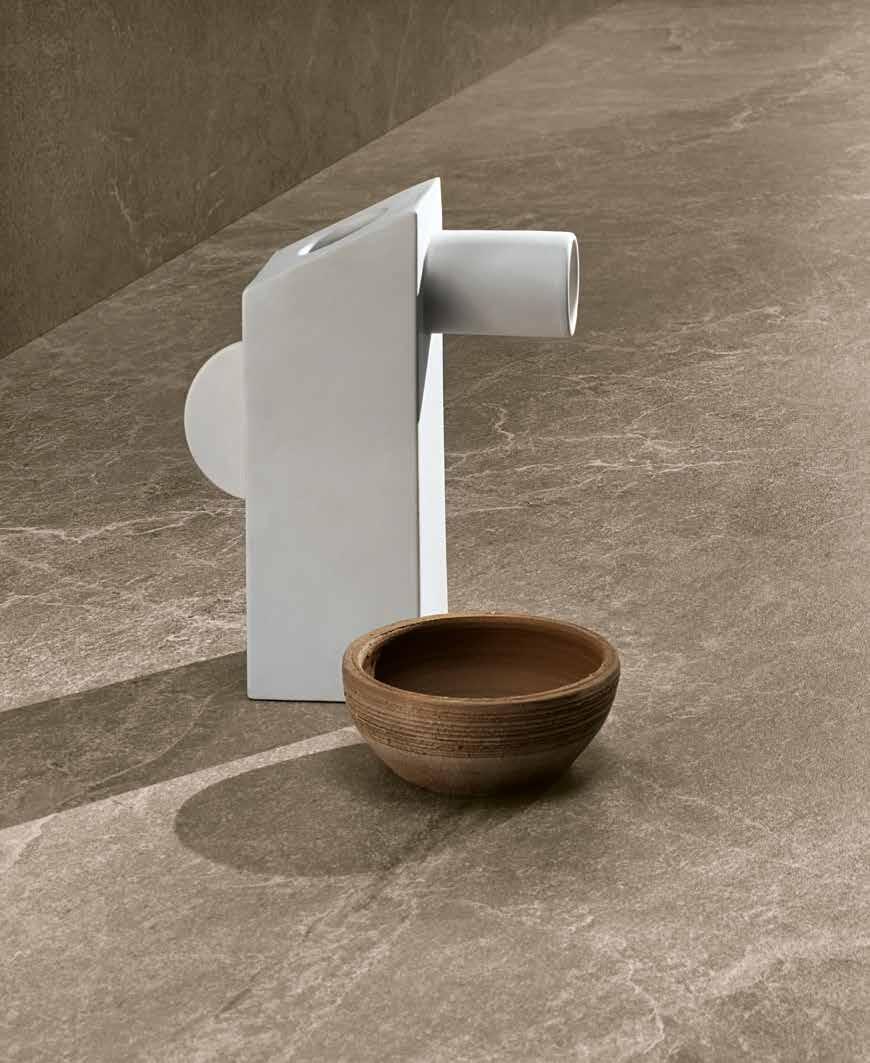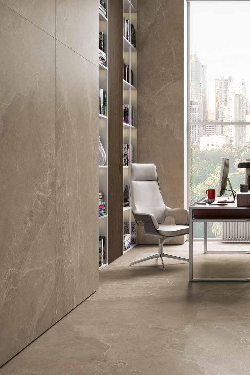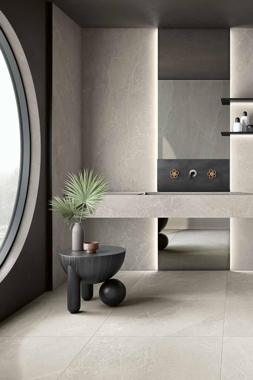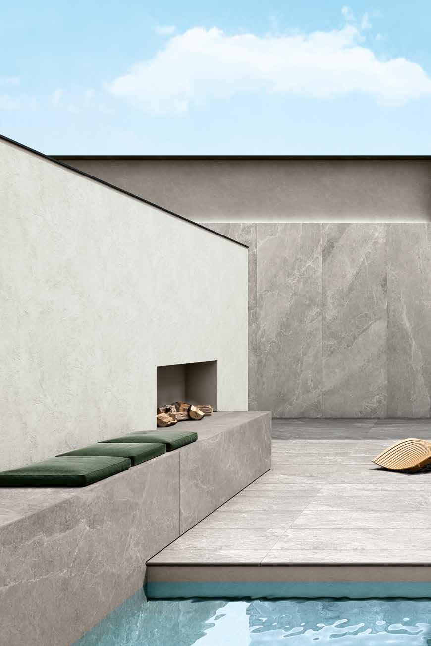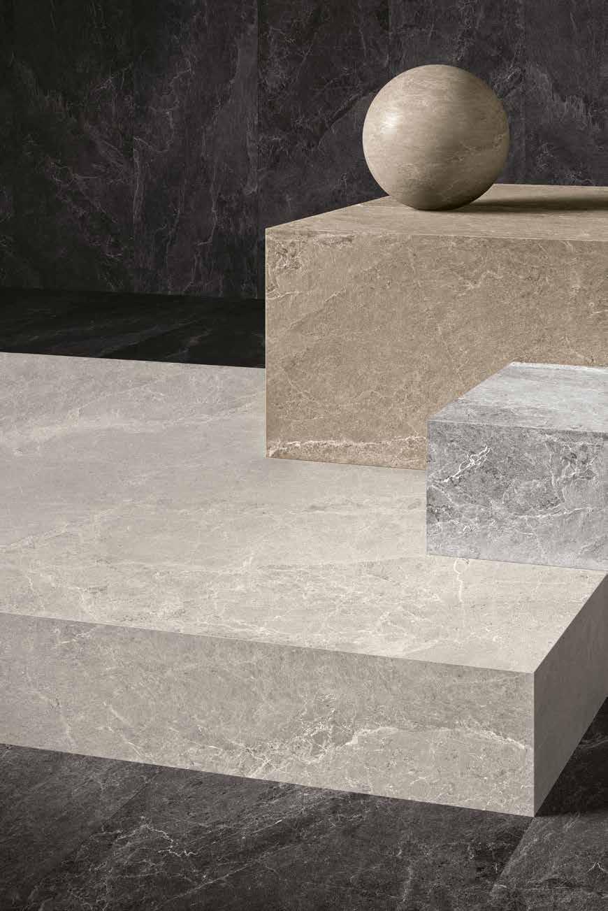 Amalgamati in un’unica tessitura raffinata, convivono diverse texture derivanti da più pietre naturali: sulla trama tipica dell’ardesia, si innestano filigrane marmoree più nette e inclusioni granulari tipiche dei limestone. Il risultato è un effetto pietra modellato sulla sensibilità contemporanea: una sintonia che va oltre il gusto e l’estetica, e arriva a immaginare spazi concreti dove vivere il mirabile connubio di bellezza e qualità.
