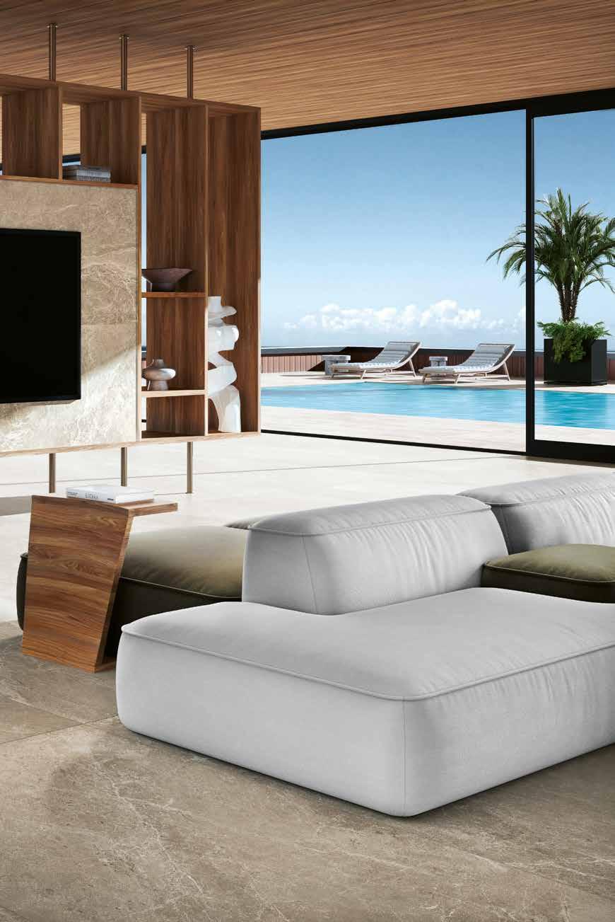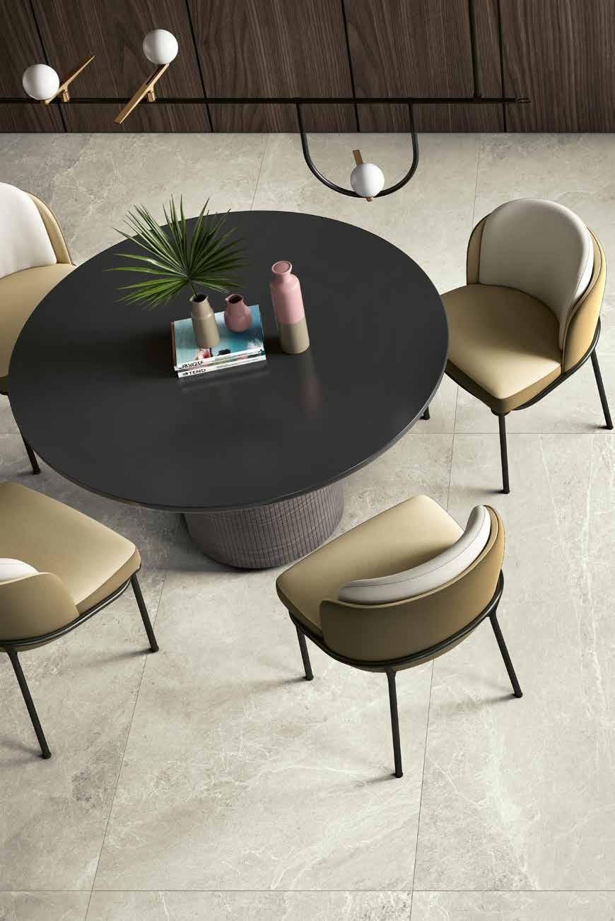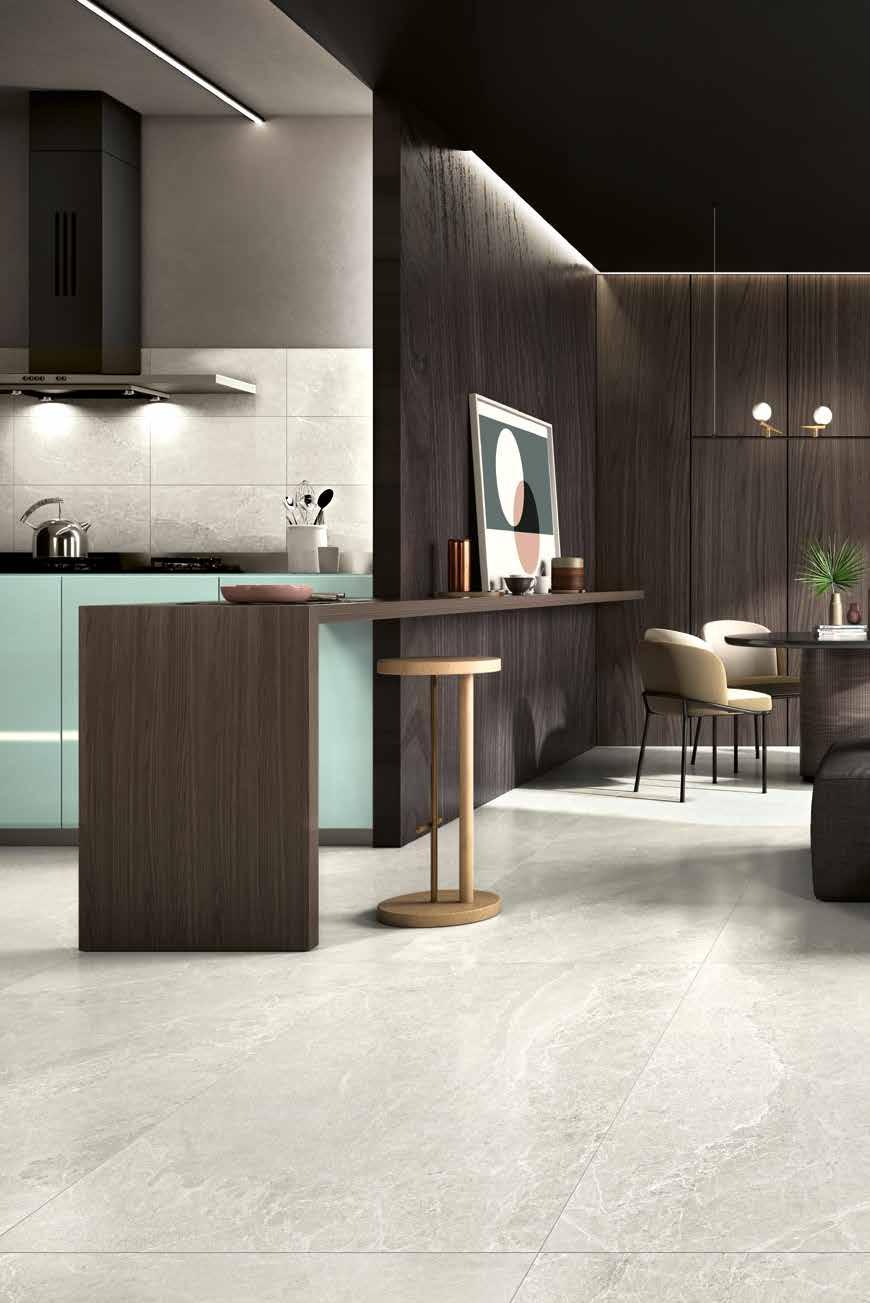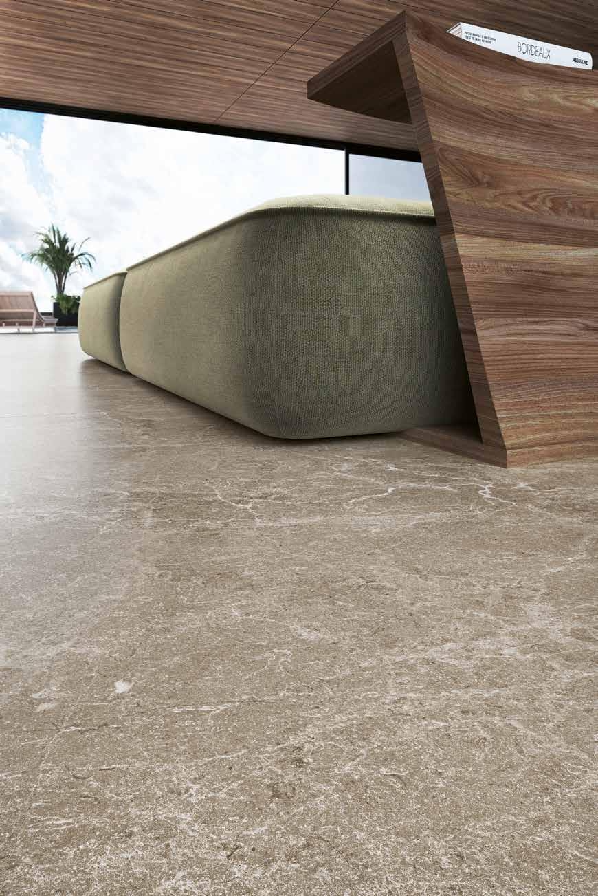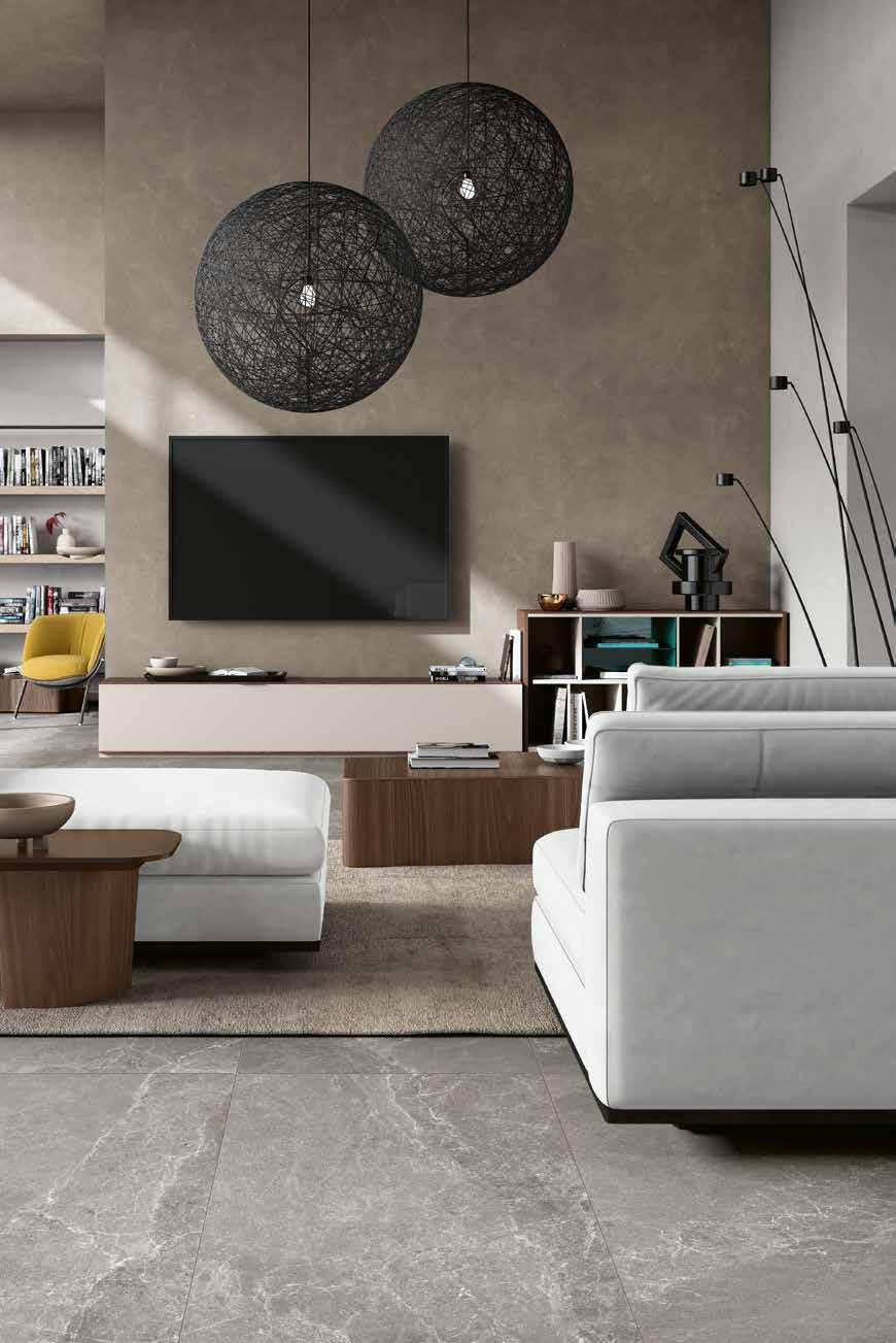Amalgamati in un’unica tessitura raffinata, convivono diverse texture derivanti da più pietre naturali: sulla trama tipica dell’ardesia, si innestano filigrane marmoree più nette e inclusioni granulari tipiche dei limestone. Il risultato è un effetto pietra modellato sulla sensibilità contemporanea: una sintonia che va oltre il gusto e l’estetica, e arriva a immaginare spazi concreti dove vivere il mirabile connubio di bellezza e qualità.