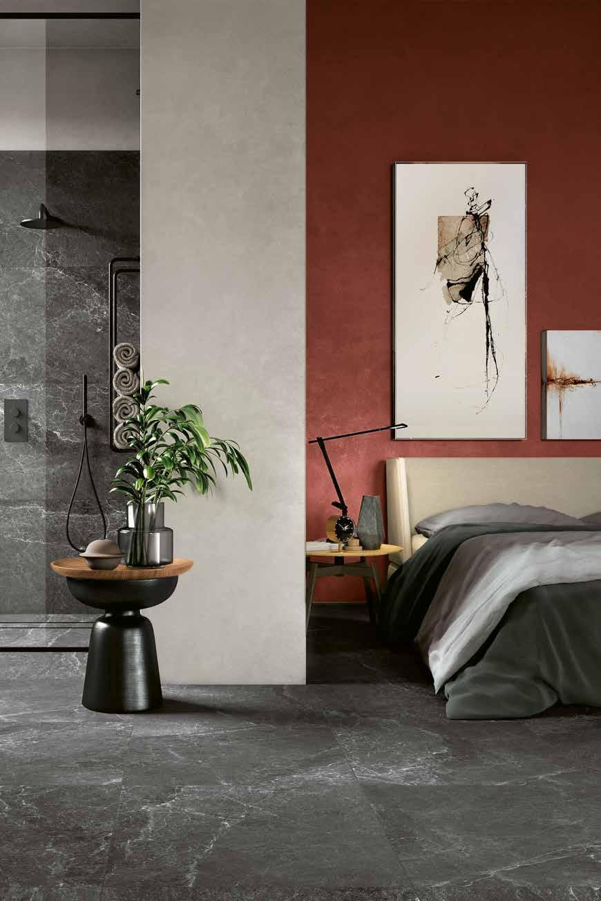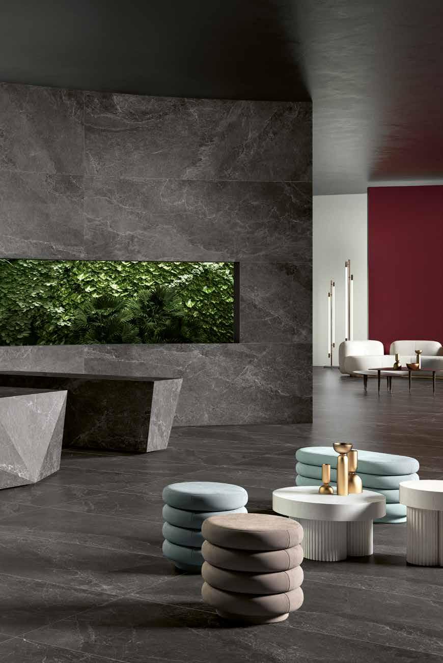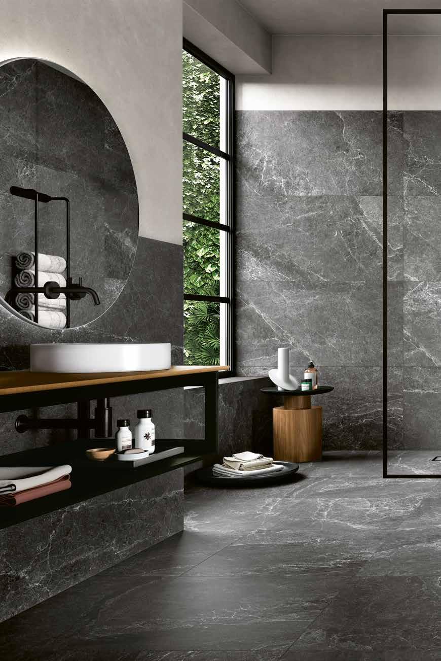 Intensa mineralità ed eleganza marmorea: un calibrato amalgama estetico ottenuto dosando tratti caratteristici del marmo e della pietra, su tutte l’ardesia. Avanzate tecnologie di decorazione digitale danno vita a un materiale ceramico inedito, un look minerale che esprime naturalità attraverso un linguaggio estetico contemporaneo.