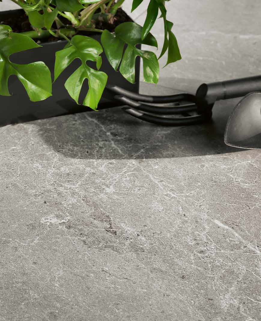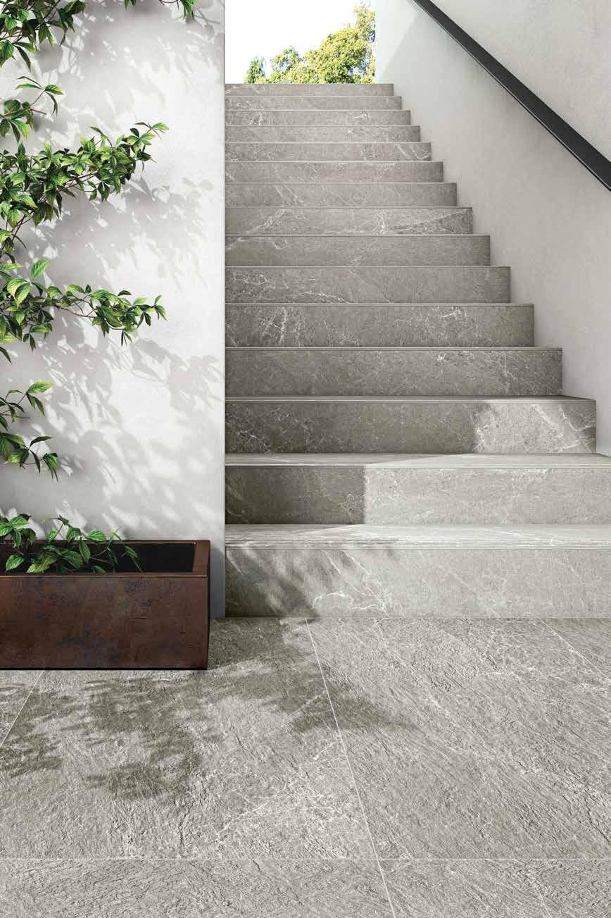 Richiama la superficie dell’ardesia a spacco, dotata di una caratteristica scabrosità che ne esalta l’aspetto naturale e ne massimizza la performance di anti scivolosità (R11C). Le caratteristiche superficiali e lo spessore maggiorato di 20 mm rendono questo materiale perfetto per contesti outdoor di pregio, in cui la miglior performance tecnica deve essere accompagnata dai massimi standard estetici.