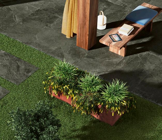 Inspired by split slate, this finish with a substantial roughness maximises its slip resistance (R11). The natural look and the 20 mm thickness make this surface intended for outdoor flooring an alluring and, at the same time, a extremely high-performance one.
