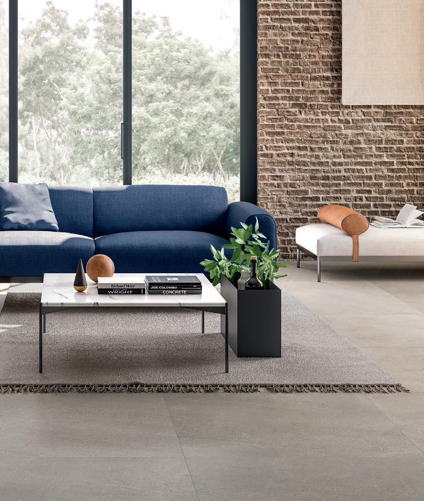 Una serie in Gres Porcellanato con una personalità marcata ed elegante che la rende adatta a progetti di ispirazione sia moderna che rustica. Le finiture superficiali e il grande formato 120x120 ne accentuano ulteriormente l’appeal e la predisposizione verso una concezione dello spazio contemporanea e versatile.
