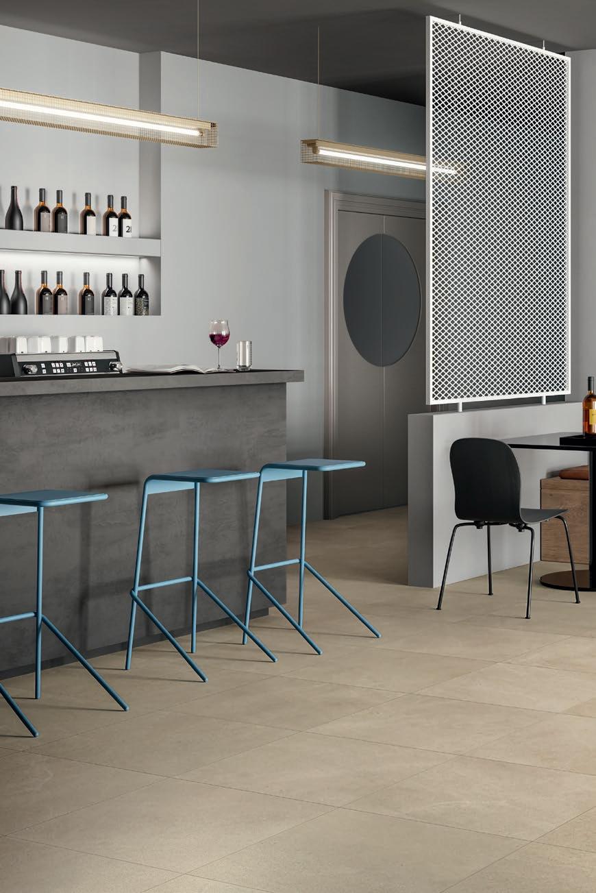 A porcelain stoneware product line with a distinct and elegant personality that makes it suitable for projects in both modern and rustic styles. The surface finishes of the large 120x120 cm format further accentuate its appeal and its predisposition for a modern and versatile concept of space.