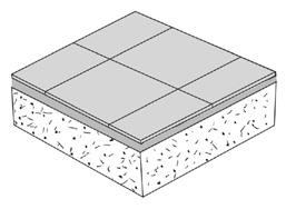 Befahrbarer Fußboden, der mit dem Innenboden koordiniert werden kann. Für diese Art von Verlegung wird eine Fuge von mindestens 5 mm empfohlen. Die Größe und die Position der Dehnungsfugen müssen von der Bauleitung festgelegt werden. Um den Regenwasserabfluss zu erleichtern, muss immer die Neigung eines Außenbodens evaluiert werden; bei der verklebten Verlegung auf Estrich wird die Neigung von diesem bestimmt.